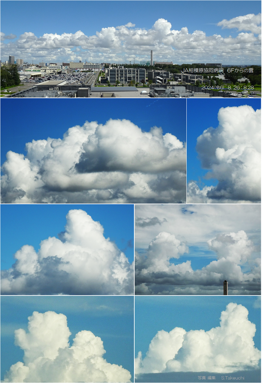 2.病院(家内が入院した時)の6階から観た入道雲は 色々な動物にも似た形になり 毎日楽しんで観てきました。