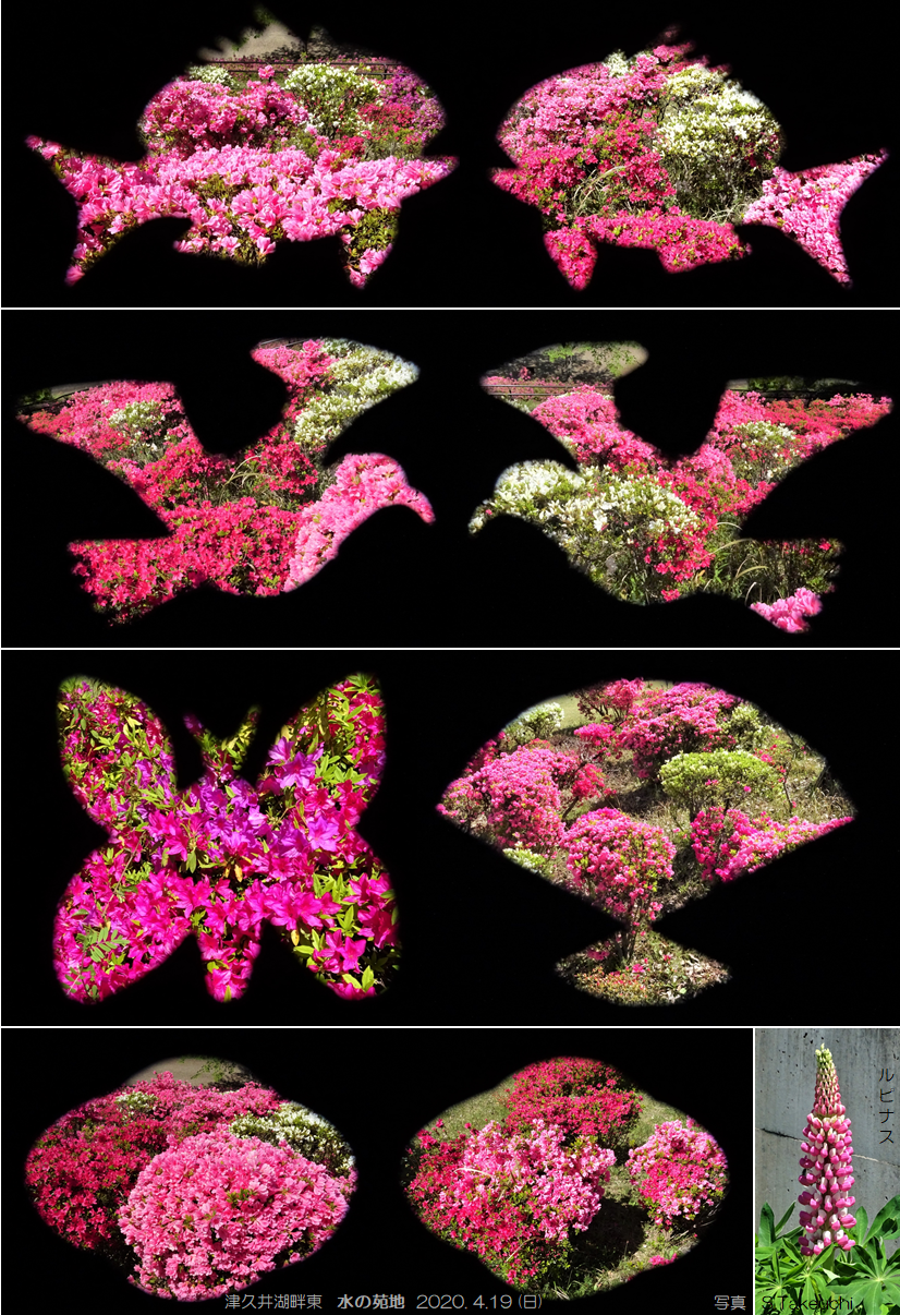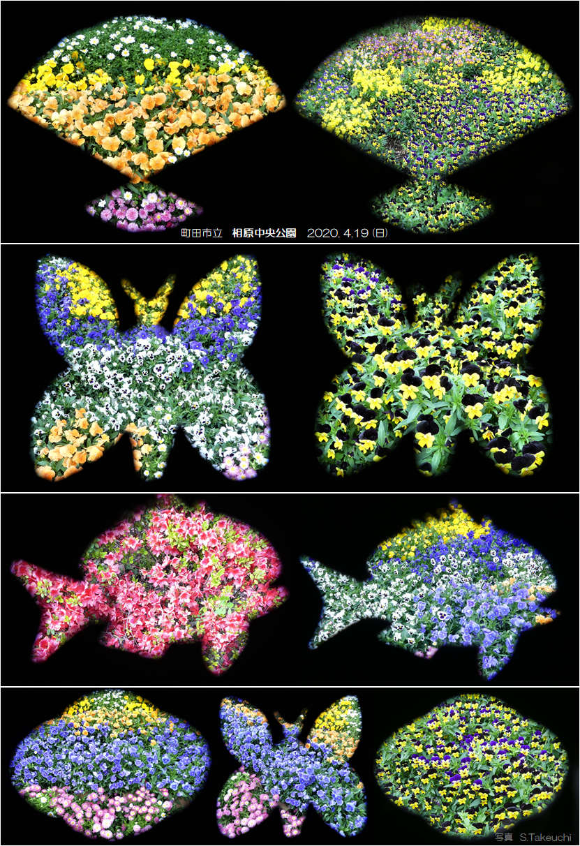2020年4月19日(日)遠くへ行く事は出来ないので、近くの公園等で、景色や花を、趣味で作った 型紙透し撮り で撮った写真を編集してみました。