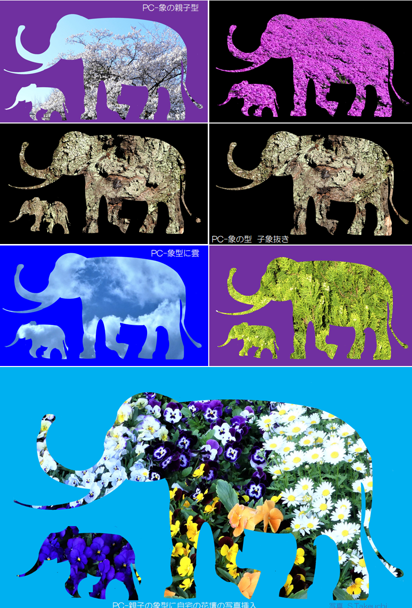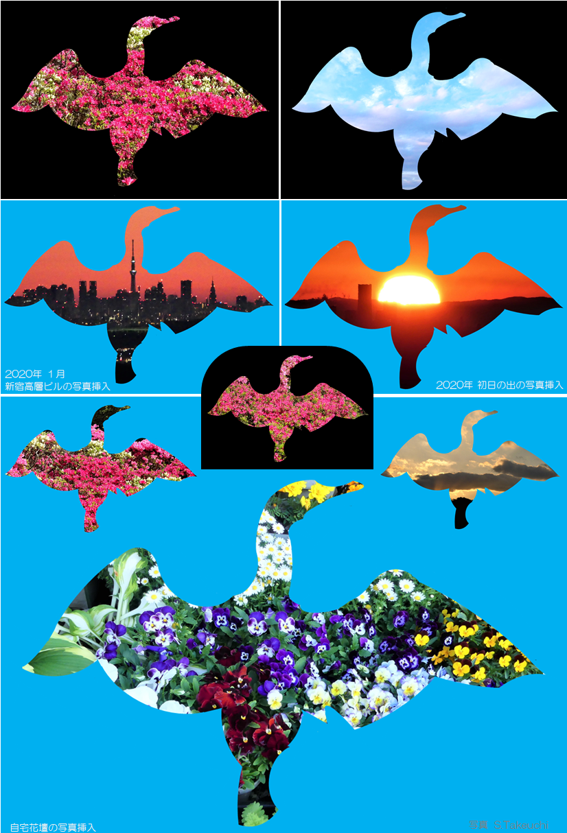 外での活動が出来ない分、自宅でPCを使い、遊びの型紙を作り、透かし撮りに真似した写真を編集しましたので ご覧ください。