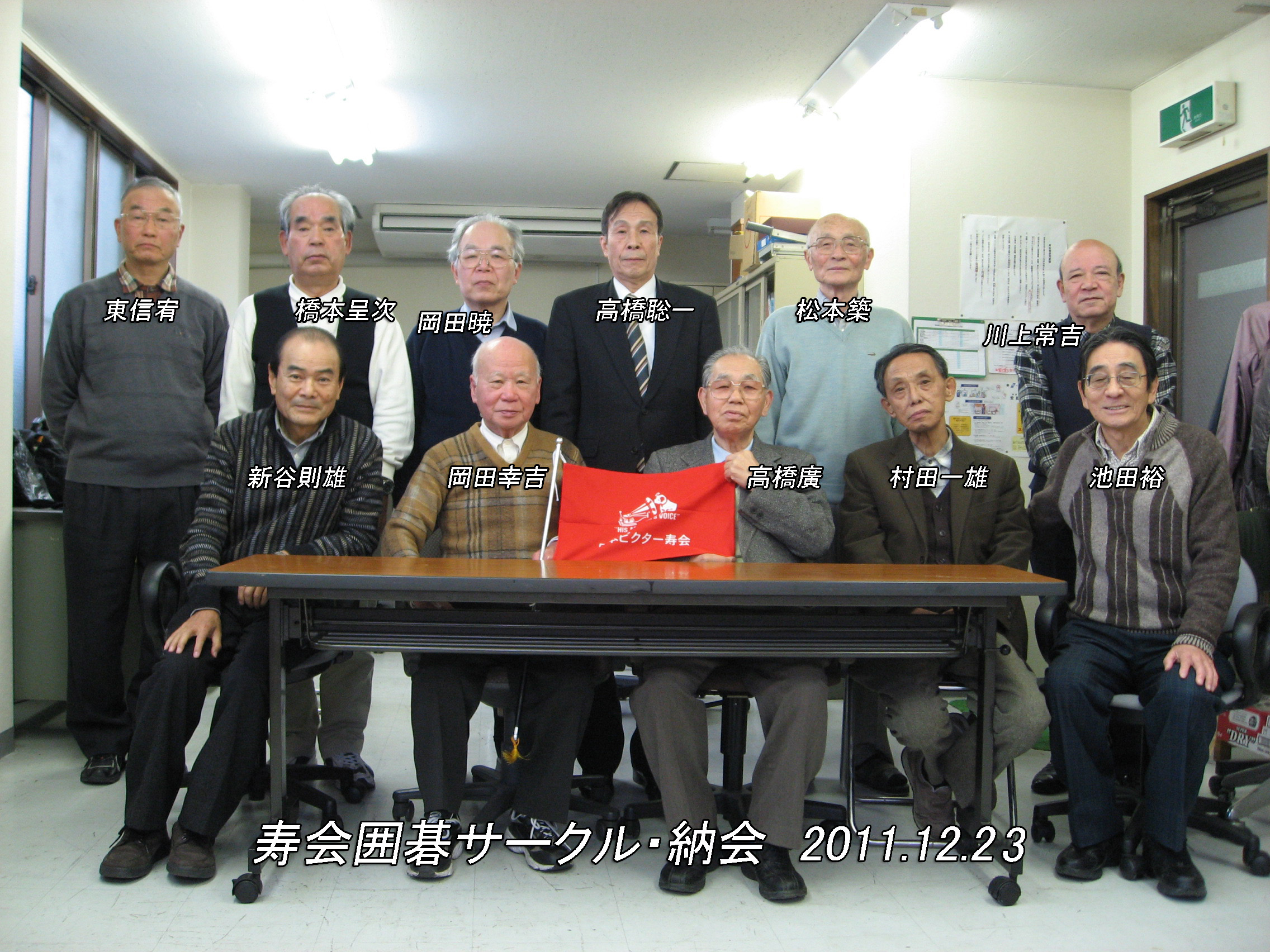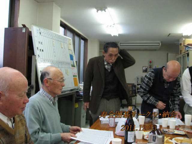 12月23日(金)10時30分〜 寿会館にて、囲碁サークル例会及び、16時から平成23年納会を開催いたしました。サークルメンバーのうち11名が今年の打ち納めに参加致しました。