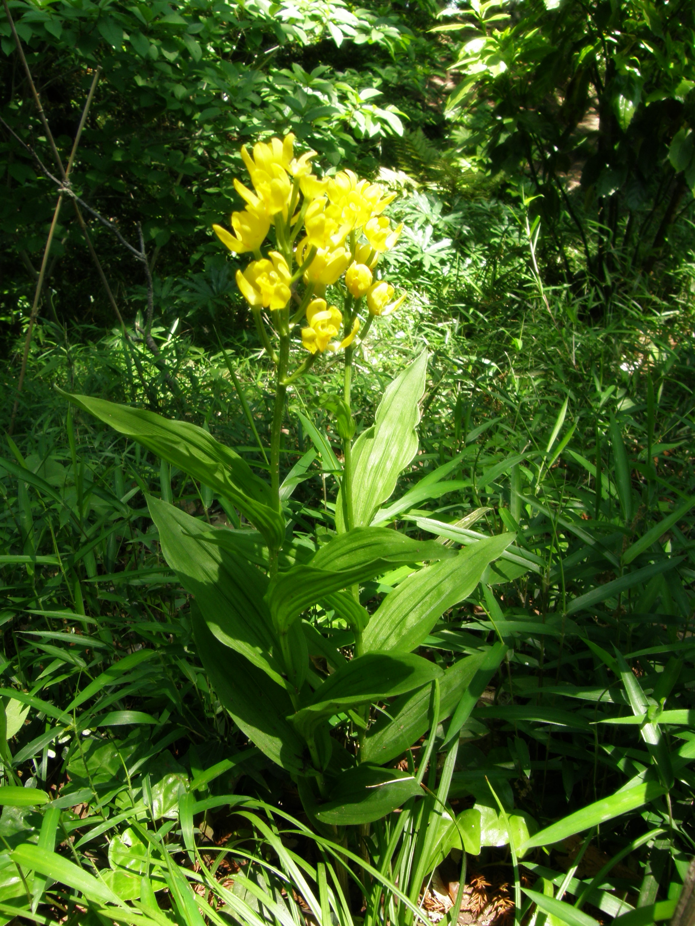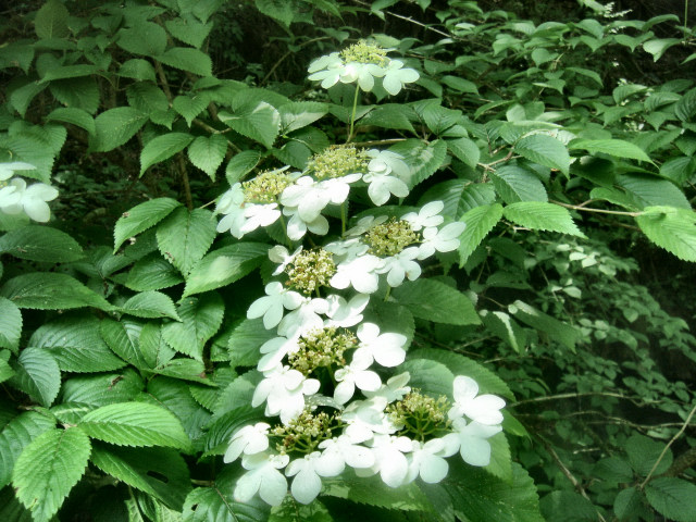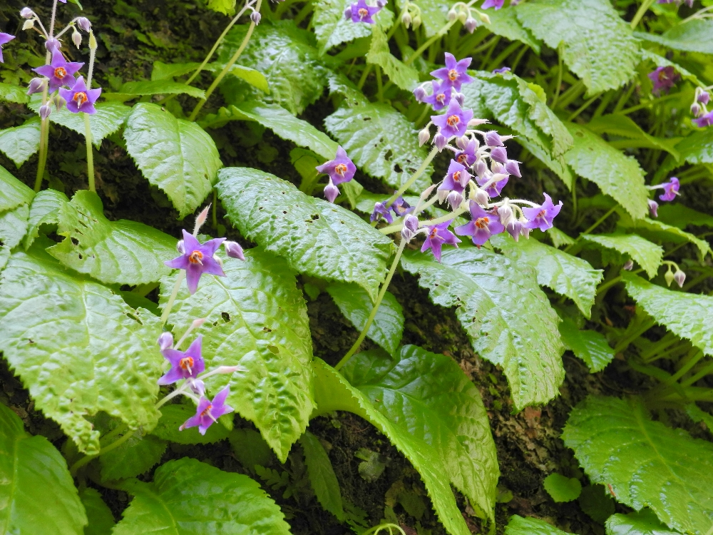 | 岩肌にびっしりの苔とイワタバコが自生し、それは見事な眺めでした。湿度と陽射しの自然環境と大きな岸壁が生育にぴったりなのでしょう。明月院のヒメアジサイと並び駆け込み寺東慶寺の名物になっています。