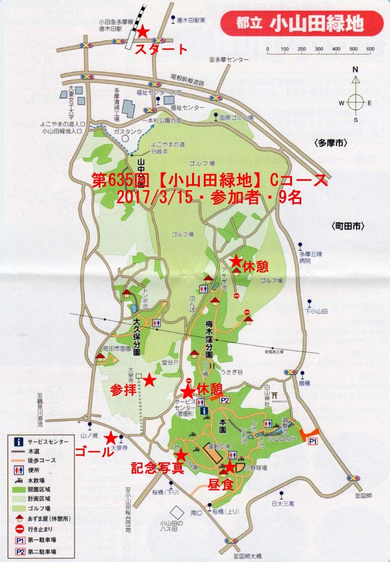 ◇催行日 2017年03月15日(水)曇り ◇コース 小田急線唐木田駅10時集合 唐木田駅→アサザ池→小山田緑地→みはらし広場→大泉寺→大泉寺バス停→ (バス)町田駅 |