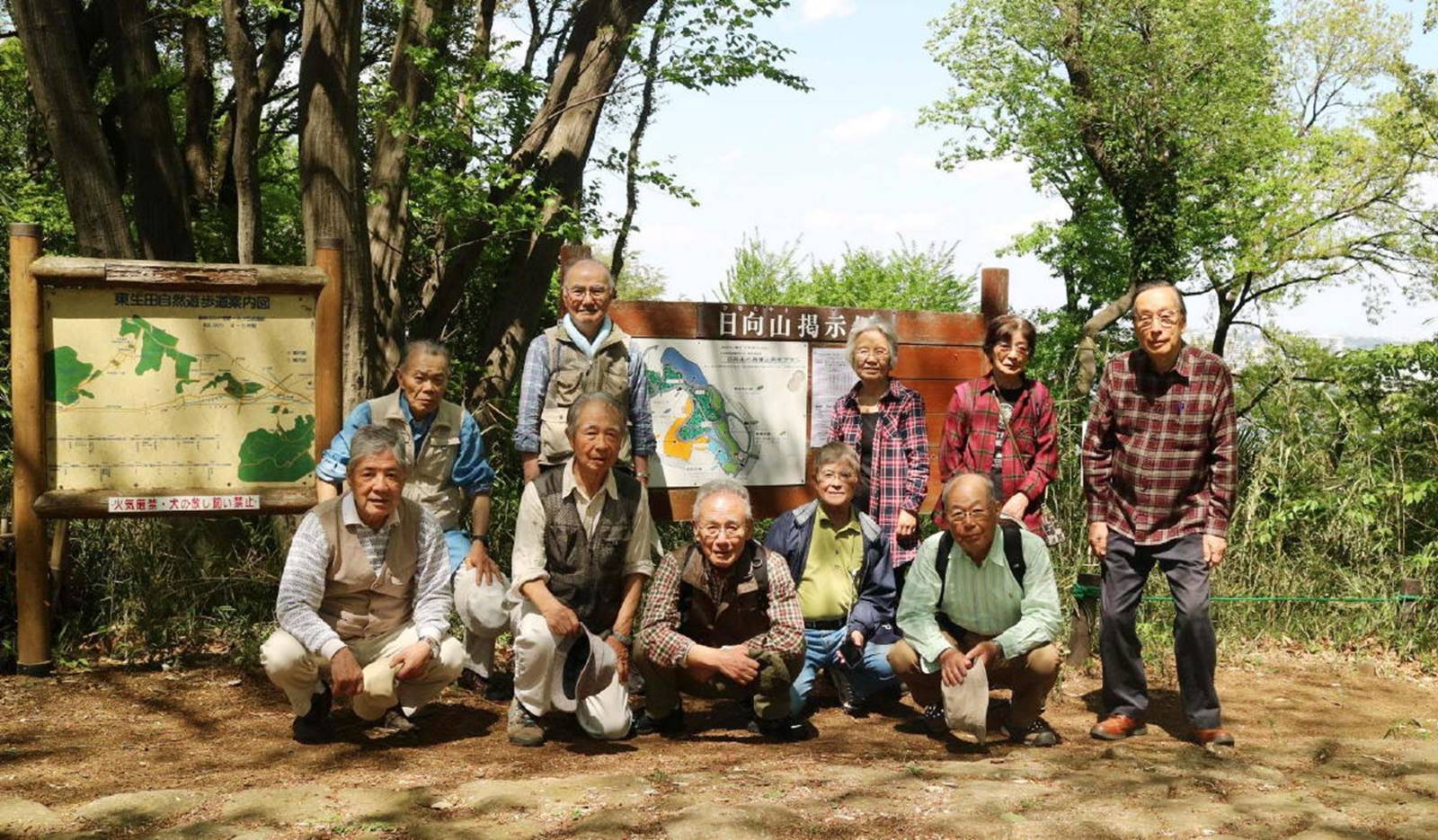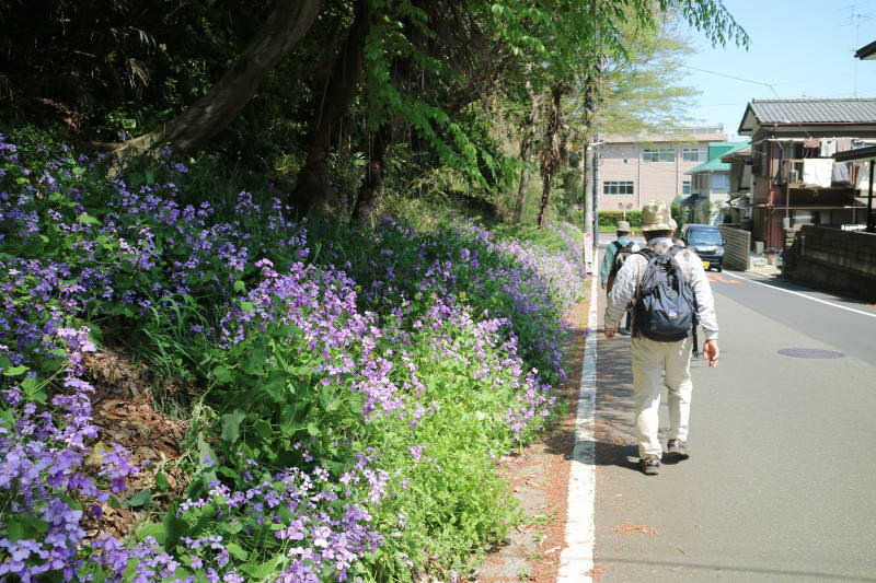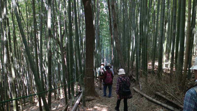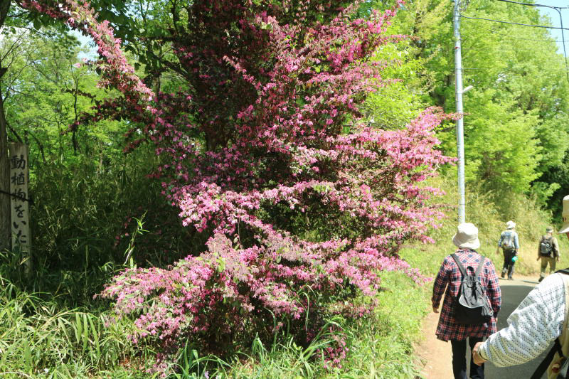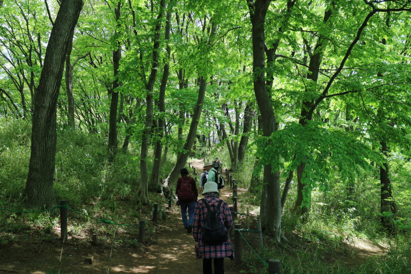 朝10時に読売ランド前駅北口に集合し朝礼を行った後、新緑を目指して川崎市が整備した多摩区内ある東生田自然遊歩道に沿ってハイキングをスタートした。平安時代初期に築造された丘の上にある八角堂跡までのなだらかな坂を登る。途中街路樹のモミジバフウ、ユリノキの新緑を眺め、つい2週間前まで咲いていた桜の緑色や桜色の芽そして歩道に散らばっている桜の花びらの残りを楽しみながら次第に汗ばんでくる。 丘の頂上で小休止した後、急な崖を階段で一気に下り生田浄水場の脇を進み土淵不動院に着きお参りする。次に長い急坂を何度も休みながら登る。ハイキングで急坂を登る時いつも「ここに住んでいる人は大変だ」とか「車でないと買物はできない」とか毎度お馴染みの感想 を言うが今回も同じ感想を言いながら登った。さらに尾根伝いに生田東高校を左下に見ながら歩を進める、油断していると見落としてしまいそうな狭い急な階段を登り少し行くと東生田緑地に入る。 丘の上の休憩所で昼食をとる。鳥のさえずりが聞こえ、そよ風は汗を蒸発させ、心が爽やかにリフレッシュされる。集合写真を撮った後階段を下り途中で東京スカイツリーその他を眺めさらに三峰神社を過ぎるとよく手入れされた見事な孟宗竹(生田榎戸特別緑地保全地区)の中を進み世田谷通りに出た。通りを横切り天神社の急階段の脇を通り階段の続く道を登り桝形山頂上に着く。 頂上の展望台にエレベーターで登る。涼しい風に吹かれながら定番の東京スカイツリーから東京タワー、味の素スタジオ、神代植物公園、中野サンプラザ、池袋サンシャイン、・・・等々を眺め2回目のリフレッシュをし、しばしうっとりとした。実をいうと丁度展望台にいらした、どうしても説明したいとお見受けされる方から御説明を受けた、同じ眺めるでも詳しい説明を聞くと聞かないとでは随分趣が違う。展望台を下り長者穴横穴古墳群の脇を通り向ヶ丘遊園駅に全員無事到着し解散した。 歩数12.000歩 |