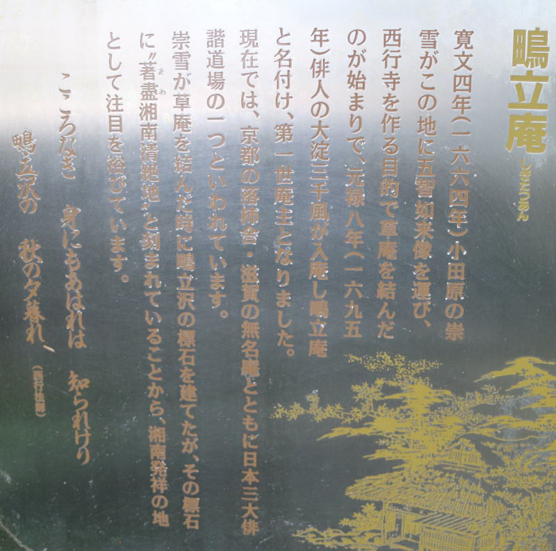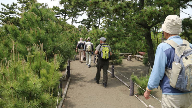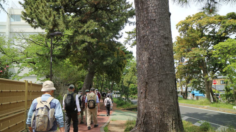 大磯駅に33名が集合、初詣で以来の最大参加人員となりました。湘南発祥の地「大磯」は、明治期には避暑地・保養地として栄えた別荘文化の佇まいが残る魅力ある町です。今日のハイキングは駅前から海側のコースを辿って大磯城山(おおいそじょうやま)公園を目指します。 駅前の空地で朝礼後、三角屋根の大磯迎賓館前を通り程なくして新島讓(同志社英学校の創始者)終焉の地、百足屋旅館跡地に着きました。 ここは日本最初の海水浴場・照ヶ崎海岸のすぐ近くでした。ここから東海道を小田原方面へ西進、吉田茂御用達の真壁豆腐店前を通り、日本3大俳諧道場の一つ鴫立庵(しぎたつあん)を見学しました。 旧東海道の松並木を見ながら足を進め、間もなく宇賀神社に着きました。参拝後、暫しの休息を取りました。ここから国道を離れて旧西園寺邸前を通り松林が美しい「こゆるぎ緑地」を散策、八坂神社を参拝して12時少し前に城山公園に到着しました。この公園は国道1号線を挟んで南側(海側)が旧吉田茂邸地区、北側(山側)が旧三井別邸地区となっていました。 まず初めに旧吉田茂邸内を十二分に見学・堪能した後、北側の旧三井別邸側に足を進め展望台下で昼食を摂りました。展望台からは富士・箱根・伊豆半島の山々が一望出来て感激しました。食後に集合写真を撮り、帰路は城山公園前バス停からバスに乗車、午後1時50分に大磯駅に到着して無事解散となりました。 |