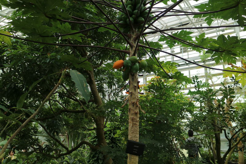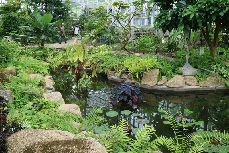 「熱帯花木室」では大きな熱帯植物、バナナ、マンゴー、カカオ等、「ラン室」では大輪から小さな花まで珍しいランが多数あった。「ベゴニア室」では色鮮やかな大輪のベゴニアが満開で、また「熱帯スイレン室」では黄色、紫、ピンクの花が凛として気高く咲いていた。