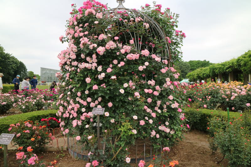 世界バラ会連合優秀庭園賞を受賞したばら園で「春のバラフェスタ」が開催されていた。左右対称の庭園では何本のバラが植えられているか、また何種類あるか見当が付かないほどある。丁度満開に近づいており圧巻であった。