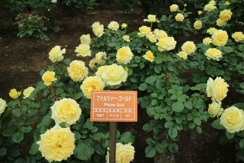 植栽されているバラの作られた国がヨーロッパ、アメリカ、日本等あり各国の特徴が伝わってくる。アメリカは大型の花だが大味であり、イギリスの花は固い感じで、フランスの花は洒落て可愛い感じがする、ドイツは生真面目な感じで、日本は技巧に走っている(霜降り模様の色が多い)。