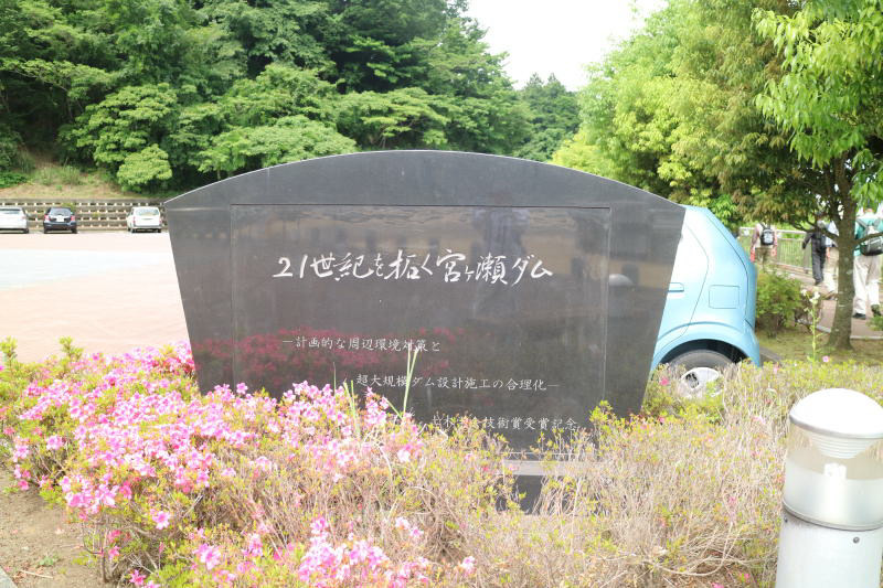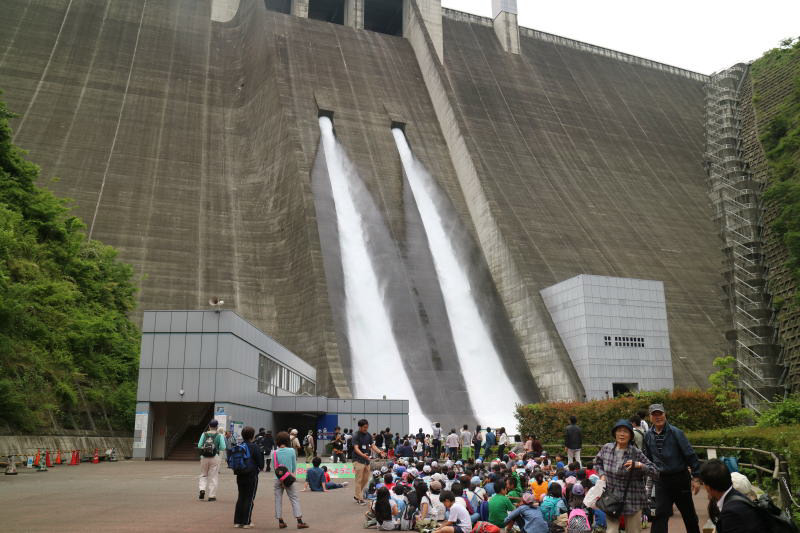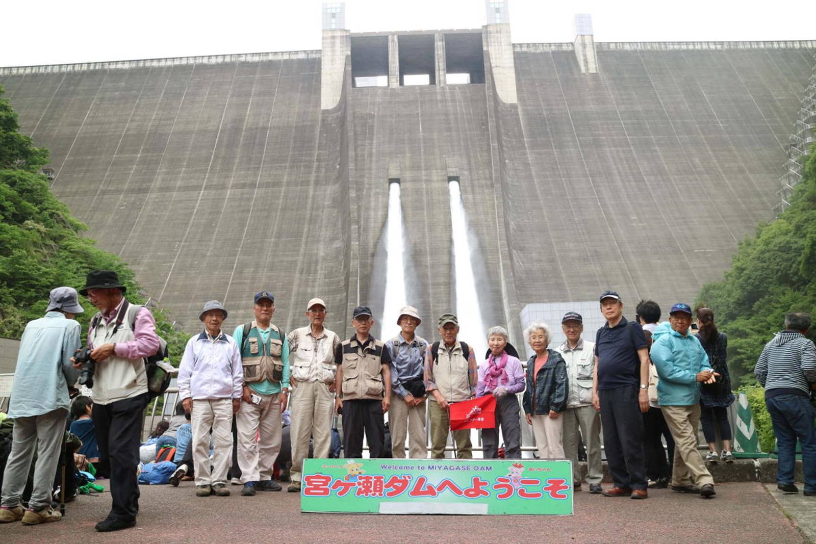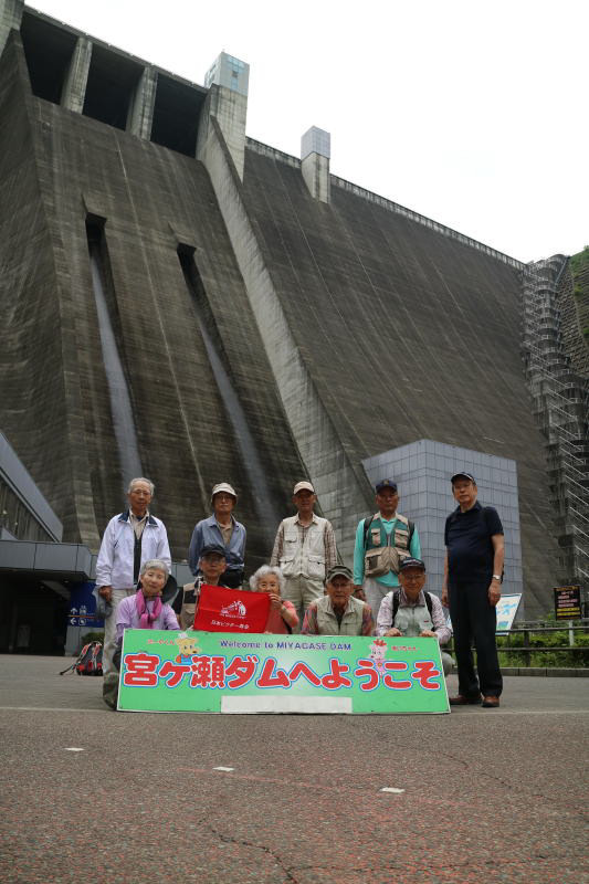 | 宮ケ瀬ダムをバックに記念写真 |