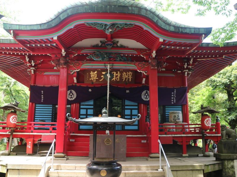三鷹の森ジブリ美術館へ向かいその近くのテーブルで昼食をとる。晴れていたが高い木々が生い茂り日影があり快適な昼食であった。西園より井の頭池に戻り弁財天を参拝する。若い女性のパワースポットとして知られている。