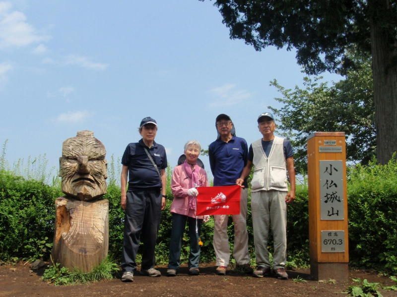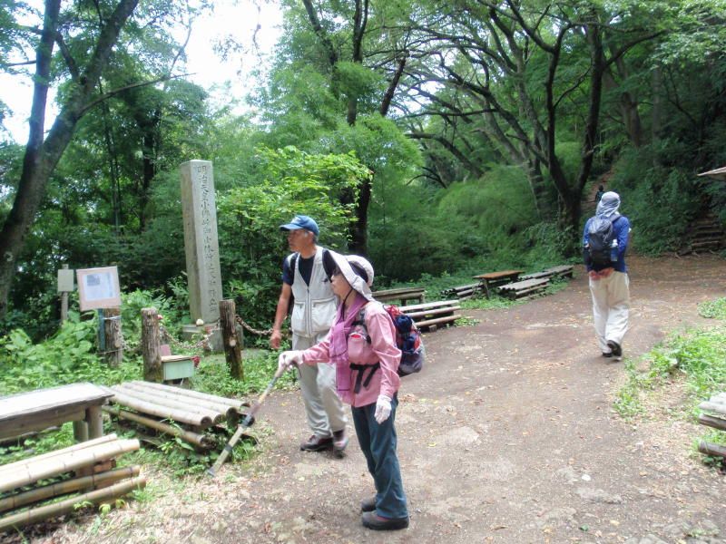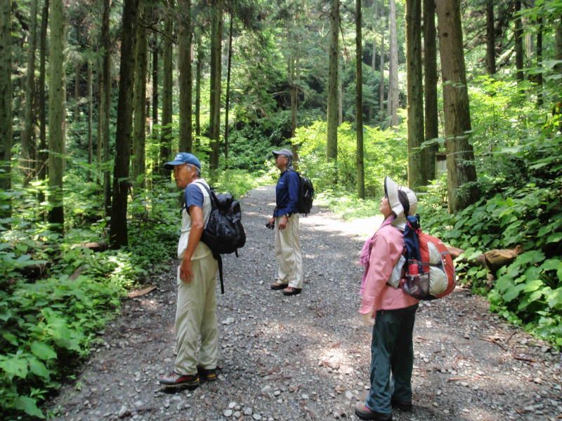 ◇参加者4名(敬称略) 山内 浩司、根井 淳、小池由美子、生江 勲 ◇メモ 朝10時、高尾駅北口に集合、10時12分発の小仏行きバスに乗る。20分位で終点小仏バス停に着き、下車後朝礼を行う。高尾山ブームでバスがレトロ風な洒落たインテリアとなり、小仏のトイレも新設されていた。朝礼後早速登り始める。小仏峠登り口までは舗装された登り坂となる。 晴天の下、汗が出てくる。途中景信山への急な登り口があり若い女性グループが登って行った。小仏登り口で小休止した後小仏峠まで急な山道を登る。道は高い樹木で覆われ日影になっており時折吹く風が涼しく心地よい。冷たい水場で顔を冷やし、30分位で小仏峠に到着したが大分足を使ってしまった。 小仏峠もベンチが整備され茶屋廃屋が撤去され綺麗になっていた。休憩後城山に向かう。途中「明治天皇小佛峠御小休所阯及御野立所」(明治13年)を過ぎる。休憩所がありお茶の接待が行われて いたところである。城山まであと25分、兎に角登らなければならない。筆者を除いて快適に登っていく。 城山の頂上は広く、茶屋がありいつものおじさんと思われる茶屋の主人が客の接待をしていた。昼食をとり集合写真を撮り下山する。帰りは殆んど舗装された林道を下りる。幸いにして樹木の葉に覆われており直射日光を浴びることもなく、途中に冷たい水場があり涼をとりながら約1時間15分で日影バス停に着く。 バス停で着替え、さっぱりとし高尾駅行バスに乗る、往きのバスは1時間に一本であったが帰りは30分に一本であった。高尾駅に無事もどり解散した。今回は年寄りもかなり登っていたが若い人はトレイルランで走っていた。高尾山は若い人にとって走るとこでもあるようで頼もしい。 歩数15,000歩 |