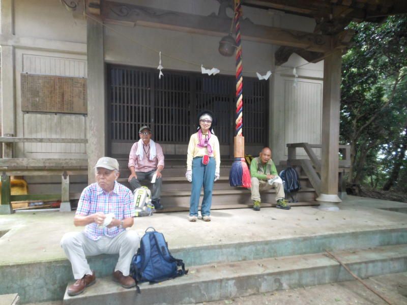 ◇参加者8名(敬称略) 井澤 章、川崎 勝弘、高橋 武久、多田 晋、小池 由美子、山内 浩司、福山 宰治、景山 康二(記) ◇メモ 今日は大磯鷹取山、初めて企画したコースだ。朝9:00大磯駅に8名が集合、新しいコースながら少し寂しい気がするがやはり高齢化には勝てないか?。気を取り直し元気な高齢者8名で出発。車道を歩かなくて良いバスがあることがわかり予定より一本早い9:00発のバスに乗車、15分程で起点である(月京)バス停着。 川沿いの広場で朝礼、準備体操の後9:20スタート。住宅街横の川沿いの道をしばらく進むと 関東ふれあいの道の標識があり、ここを左に折れ北に進むと約2kmで鷹取山の標識。9:45東の池着、池の中にある厳島神社で安全祈願と小休止。 農家が育てている花畑を眺めながらいよいよ登りに入る。舗装道路だが周りはうっそうとした竹林・杉林で勾配はかなりきつく真夏のように汗が噴き出す。15分程登った所でようやく緩やかな山道に入り一息つきながら進む。10:30予定通り鷹取山山頂(219m)の鷹取神社着、水分補給と小休止。 この大磯鷹取山の名は昔徳川家康が平塚に鷹狩りに来た事に由来するとの説から名付けられている。また鷹取神社は周辺をうっそうとしたシイやタブノキの常緑樹に囲まれた深山に鎮座する風格である。神社にお参りを済ませ霧降の滝に向け出発。ここからは緩やかな下りで足取りは快調10:45松岩寺分岐点着。 ここから左折し湘南平霧降り渓流の道に入り、周辺の雄大な大山山系と秦野・伊勢原市街の景色を眺めながら進み11:15霧降の滝着。季節柄水量が多少少なかったが山間の風情ある滝である。滝をバックに記念写真を撮り松岩寺へ、途中見晴らしがよい場所を見つけ畑の中で昼食。 畑の真ん中だが平塚市街から相模湾・江の島まで見渡せる絶好の昼食ポイントである。12:00最終目的地の松岩寺へ向い散策とお参り、12:30お寺の急階段を下りバス停着。12:44発のバスで平塚駅へ、13:15無事着解散となった。 |