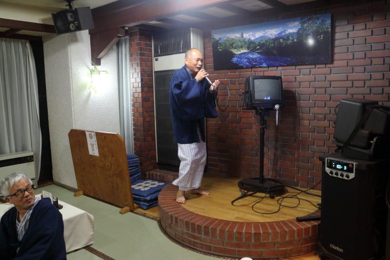 10月17日(火) 桜木町駅前より待ちに待った八方尾根・栂池高原宿泊バス旅行がスタートした。横浜は小雨が降っていたが白馬は今日・明日は晴れとの予報に安堵する。車内はすぐに和やかになり談笑、酒盛りが始まる。 何回か休憩をとりながら八方駅(標高768m)に着き急勾配のリフトに乗る。兎平駅(1380m)と鎌池(1679m)でリフトを乗り換え八方尾根(1830m)に到着する。乗車時間は約20分。標高差は1000m以上。八方駅の気温は13度、従って八方尾根は7度と推定される。寒い。八方駅近辺の紅葉はあまり進んでいないが、兎平の紅葉は真っ盛りである。 八方尾根は盛りを過ぎて落葉になっていた。八方駅の天気は晴れだが八方尾根は霧が濃く何も見えない。幻想的な非日常の世界でこれはこれで「いとおかし(趣がある)」。霧の間から第一ケルンを見つけ辿っていき石を積み御霊を供養する。 登ってきたリフトを乗り継いで八方駅に戻り、バスで栂池高原駅 (栂池高原ホテル)に入る。入浴の後は楽しい宴会。談論風発、酒も進みカラオケで自慢の喉が披露される。話は尽きないが今日は朝が早かったので早めの就寝となる。本日の歩数5000歩 | |||