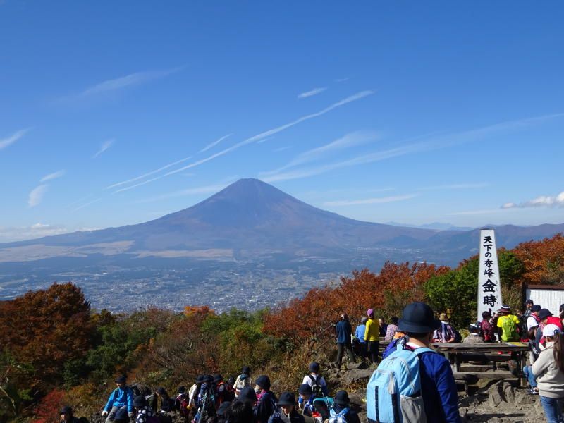 ◇催行日 2017年11月01日(水) 天気 晴れ ◇コース JR小田原駅〜桃源台行バス8時45分発→(バス45分)仙石バス停→(15分)金時山 登山口 →(30分)矢倉沢峠→(60分)金時山→(60分)金時神社→(20分)仙石バス停→ (バス45分)小田原駅 |