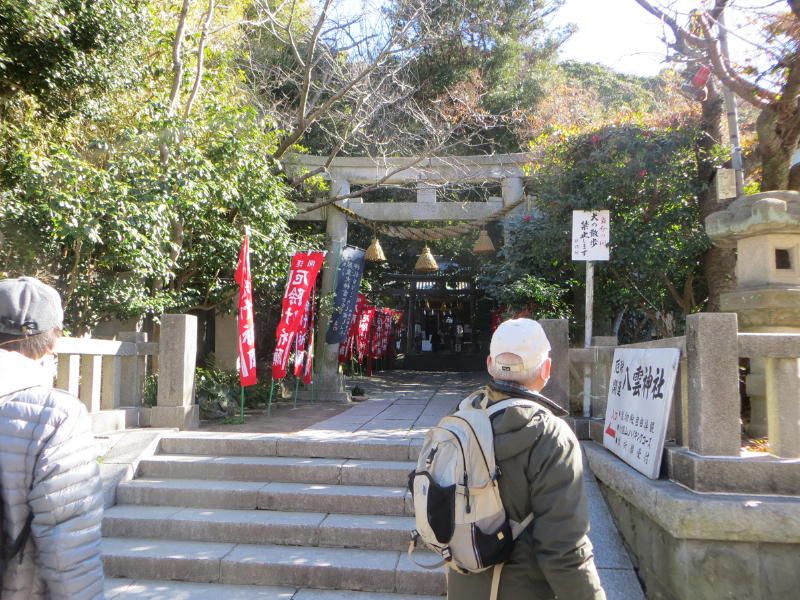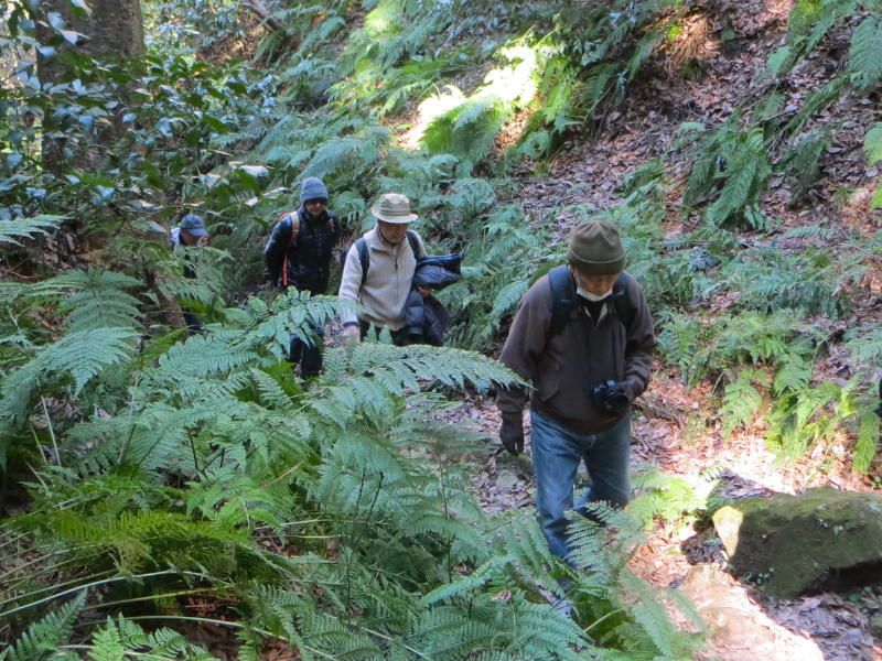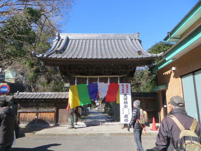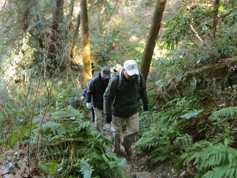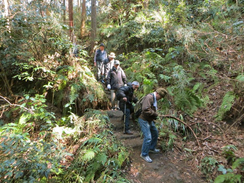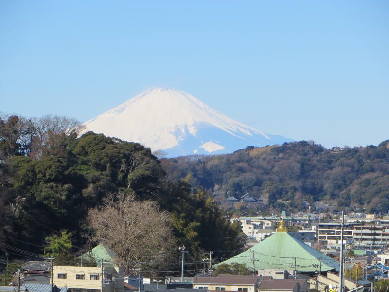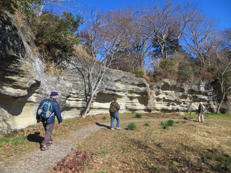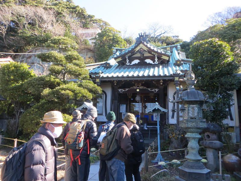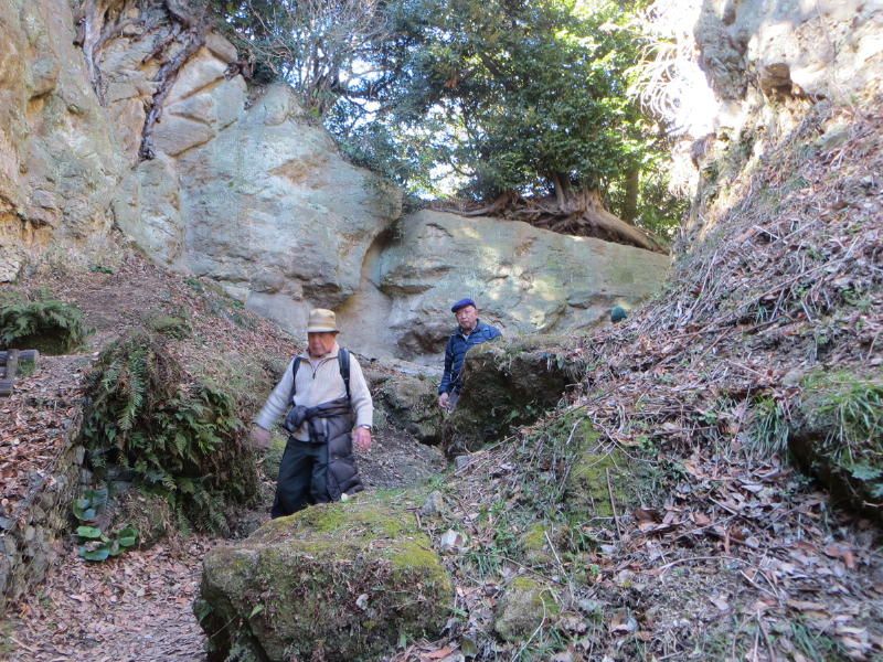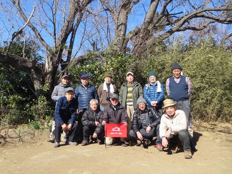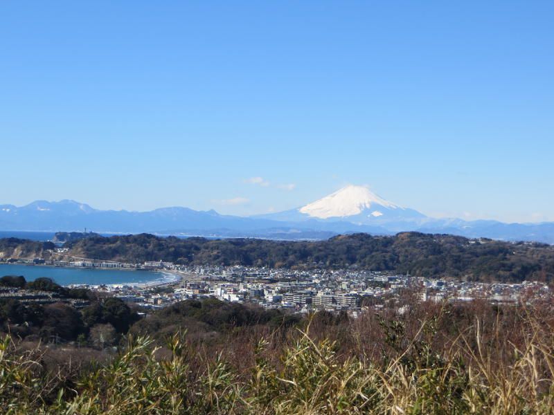 ◇参加者 11名(敬称略) 小倉通男、山本三樹夫、城市靖三、舩坂栄一、浅井信義、土居修治、平野 猛、加藤博紀、 新谷則雄、根井 淳、生江 勳 ◇メモ 朝10時、鎌倉駅東口に集合、雲一つない快晴で空気が澄み渡っている。朝礼後出発、長勝寺に向けて南東に歩を進め、途中常栄寺(ぼたもち寺:日蓮上人に「ぼたもち」を差上げた)に寄る、境内は紅梅が咲き始めている。次に安国論寺(日蓮布教のための庵)の前をとおり長勝寺に着く。長勝寺は鎌倉武士の石井長勝が日蓮のために建てた寺で、西郷隆盛像を制作した高村光雲作の日蓮の大きな銅像がある、なぜか日蓮が西郷隆盛に似ている。この近辺は日蓮ゆかりの寺が多い。 長勝寺を出ると横須賀線に沿って登り道になり名越切通(なごえきりどうし)に出る、鎌倉七口の一つでかなり狭い、いざ鎌倉の時には侍が身を屈め乍ら馬で駆け下りる姿が想像される。ここで北に歩を進め「まんだら堂」(鎌倉から室町時代の岩をくり抜いた墓群)へ向かうが調査中で立ち入り禁止、左に迂回する。お猿畠の大切岸(建築用石材を切り出した崖)で逗子方面の景色を堪能する。 次にパノラマ台(標高110m)へ向かう、急な階段をゼイゼイと息を弾ませ上ると快晴のなか360°景色が広がる。まずは雪を頂いた富士山に一同感嘆する、金時山、江の島、由比ヶ浜、鎌倉市内、大島等見放題である。次に衣張山(120m)に登る、相当疲労が溜まり、ここで昼食を摂り英気を養う。 ここも富士山ほかが堪能できた。何故か富士山を見ると得した気分になり今までの苦労を忘れる。集合写真を撮り下山する。途中ほとんどが階段で足を傷めないよう慎重に下りる。そこからバスに乗る誘惑を逃れるためにバス通りに出ずに田楽逗子の路を鶴岡八幡宮へ向かう。更に全員足で歩いて鎌倉駅に無事到着し解散した。歩数15,000歩で更にアップダウンがあり体感Bコースであったが富士山に癒された。 |