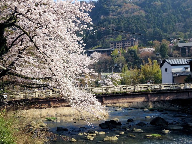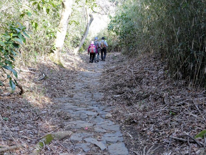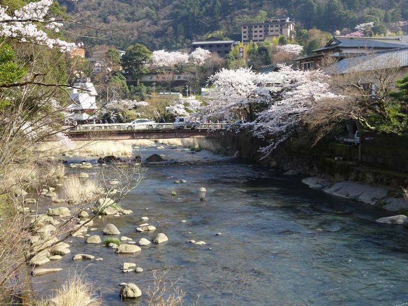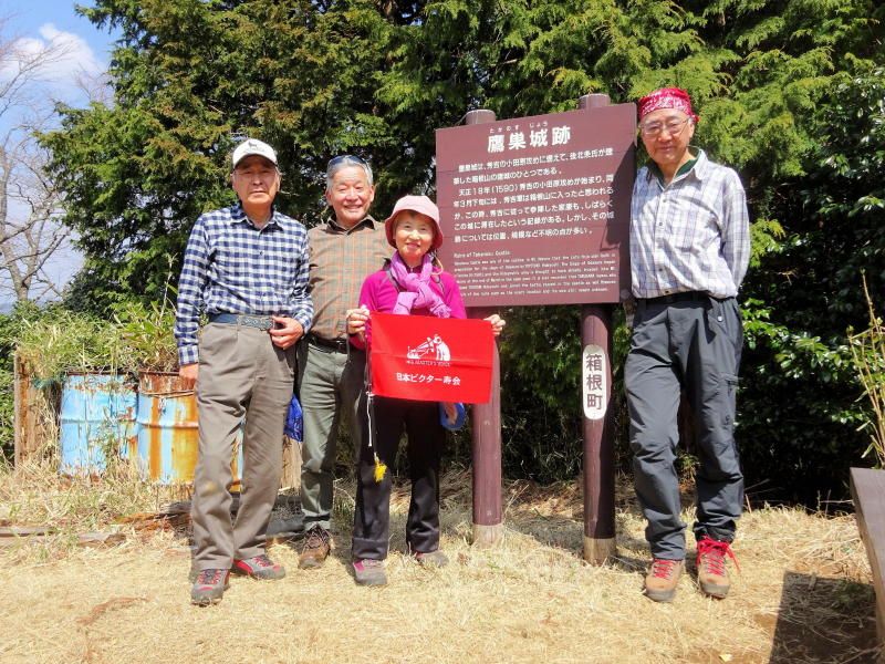 ◇参加者 4名(敬称略) 小池由美子、山内浩司(写真)、景山康二、根井 淳(記) ◇メモ 定刻10時、箱根湯本駅に集合したのはわずか4名の参加者と寂しい限り。スイッチバックを繰り返し宮ノ下駅に到着。朝礼のあと11時ハイキングをスタートする。千条の滝までひと登りすると、ヤングガールとシニアガールの2グループが休憩していた。水かさの少なくなったように思える千条の滝の前を通り鷹巣山を目指す。登山道は途中が崩落で閉鎖しており迂回路を登るが荒れていて、難行の登りとなりヒィヒィ言いながら登りつめ、やっと鷹巣山(鷹巣城跡)山頂に着く。ここで昼食を摂る。 ゆっくり食事をしていると千条の滝の前で出合った2グループが追いかけてきてしばし歓談をする。ここからは浅間山経由の長い下りとなる。足元に注意を払いながら降りることとする。鷹巣山や浅間山での桜(山桜かな)はまだまだ固い蕾であったが、湯本に着くとソメイヨシノが満開でしばし橋の上で見とれていた。山と里ではえらい違い(標高差は700m)である。 今日は、一日中天気に恵まれたハイク日和でいい汗をかいた。 ◇ハイキング催行記録 |