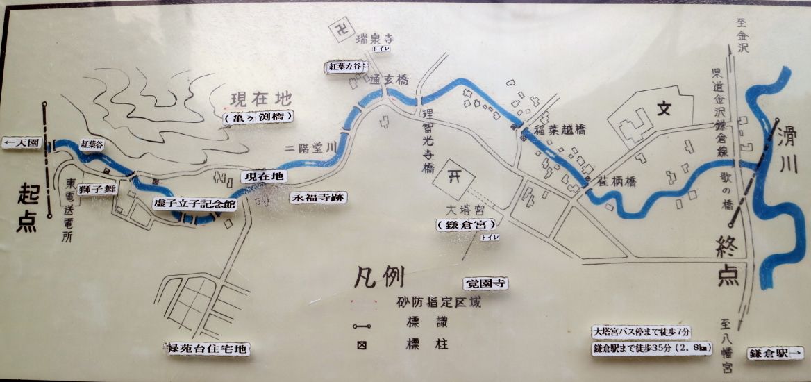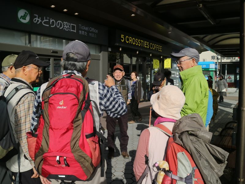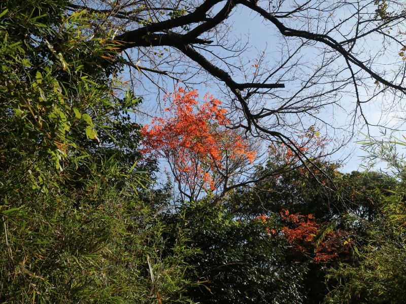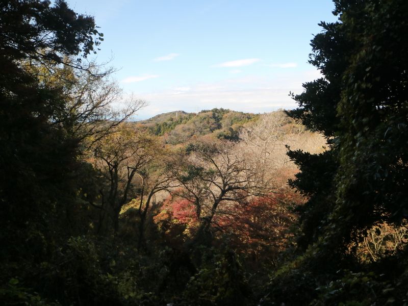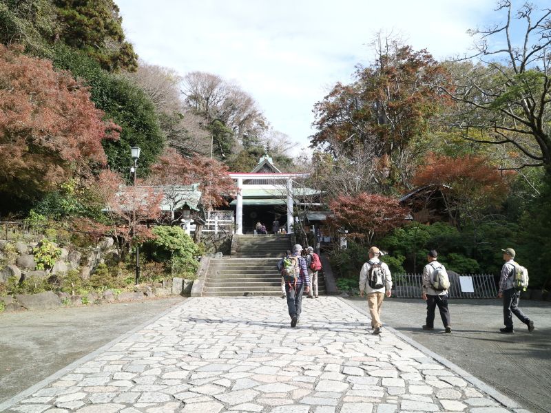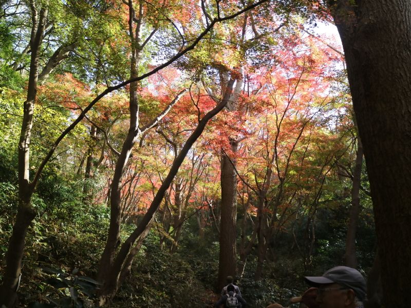 ◇参加者11名(敬称略) 中平 勇、大曽根 収、藤森 文夫、渡辺 信久、多田 晋、小池 由美子、 山内 浩司、 新谷 則雄、景山 康二、福山 宰治、根井 淳(記) ◇メモ 鎌倉駅9時30分に11名が集合する。山内リーダーより本日の後半コースについて、建長寺から亀ヶ谷切通し経由のルートを割愛し、 覚園寺から鎌倉へ戻るルートとする 説明が有った。 そこで鎌倉にお詳しい大曽根さんにコース案内をお願いした。 9時40分 鎌倉駅前をスタートする。時間が早いせいか人通りの少ない小町通りを抜けて行く。鶴岡八幡宮を経て鎌倉宮に着く。 ここで、今年一年間の安全ハイキング御礼参拝を行う。永福寺跡公園の脇を抜けて獅子舞の谷に入って行く。昨夜の降雨で、遊歩道 がぬかるんでおり足元に注意を払いながら慎重に登っていく。 台風による塩害で散々だった鎌倉宮の紅葉とは違い、獅子岩あたりの紅葉は多少見栄えがしたが塩害の影響は受けていた。 11時15分 天園茶屋経由で大平山に到着する。ここで早めの昼食を摂ることにする。 好天に恵まれ伊豆から箱根の山々を望むことが出来たが富士山はあいにく雲に隠れていた。 11時55分 鎌倉市最高峰の大平山(159.2mの標高)登頂後、建長寺方向に歩を進める。 建長寺・覚園寺分岐を左折して覚園寺ルートを下りて行く。獅子舞の谷の登りとは、大きく異なり乾いた落ち葉を踏みしめながら 緩やかな下りを軽快に歩むことが出来た。遊歩道を降りると直に鎌倉宮へ戻る。ここから今朝のルートを遡る。 途中、鶴岡八幡宮で参拝をし、大銀杏の復活具合を確認し鎌倉駅に向かう。 13時35分 鎌倉駅前で無事解散となる。今日は、師走とは思えぬ暖かく穏やかな最高のハイキング日和りとなり、 コースにも恵まれ快適な一日を過ごすことが出来た。。 ◇ハイキング催行記録