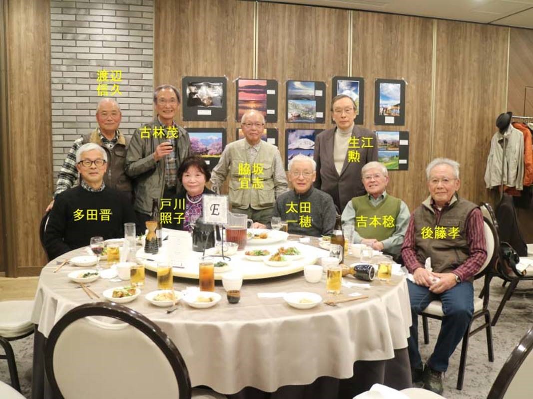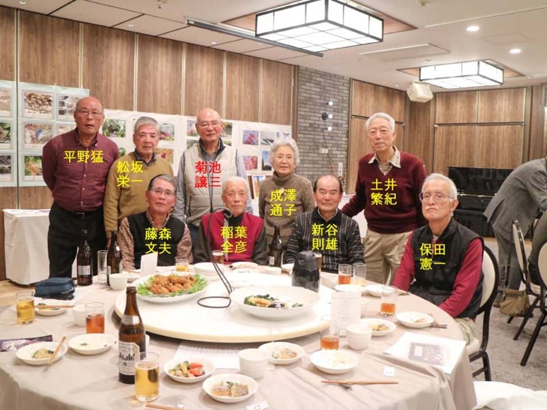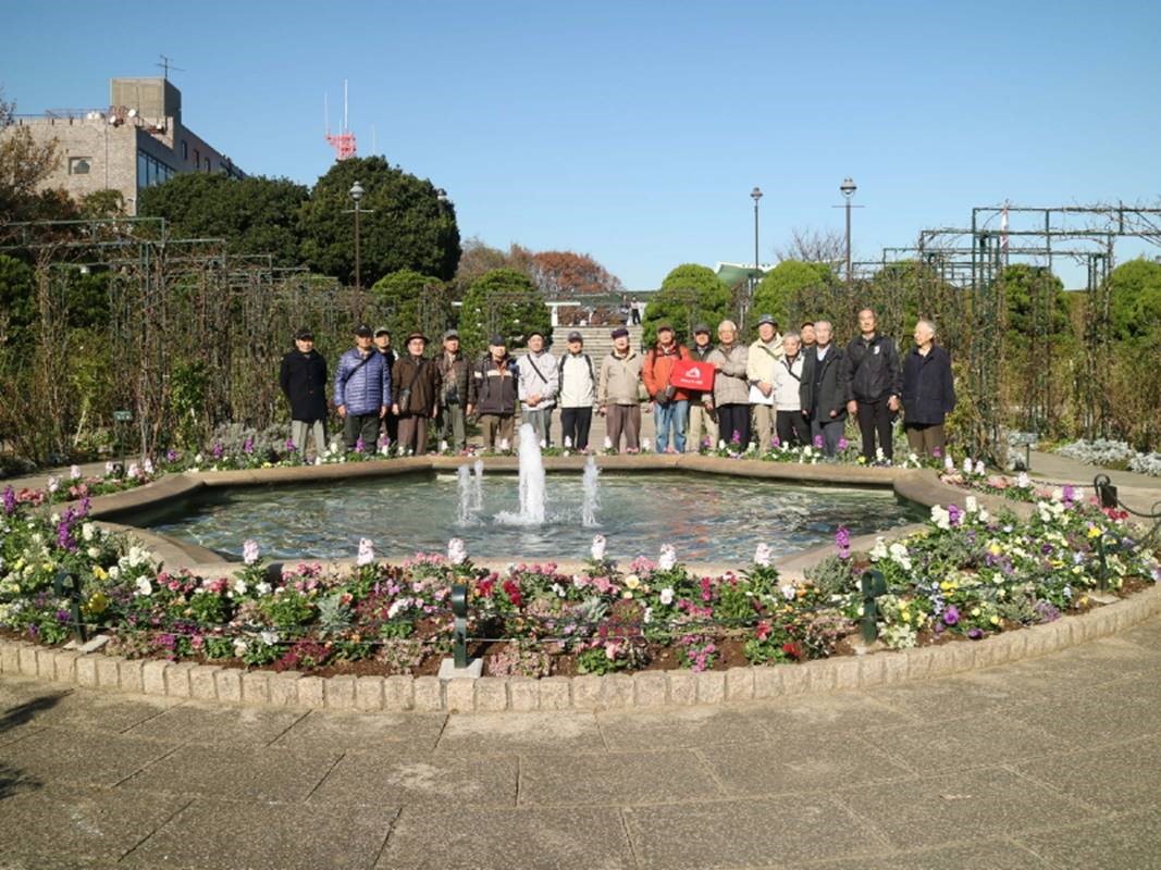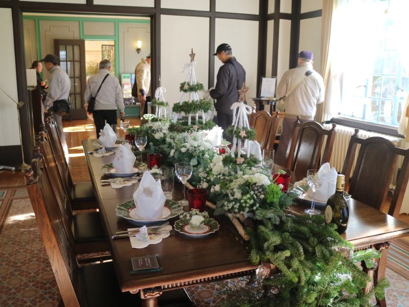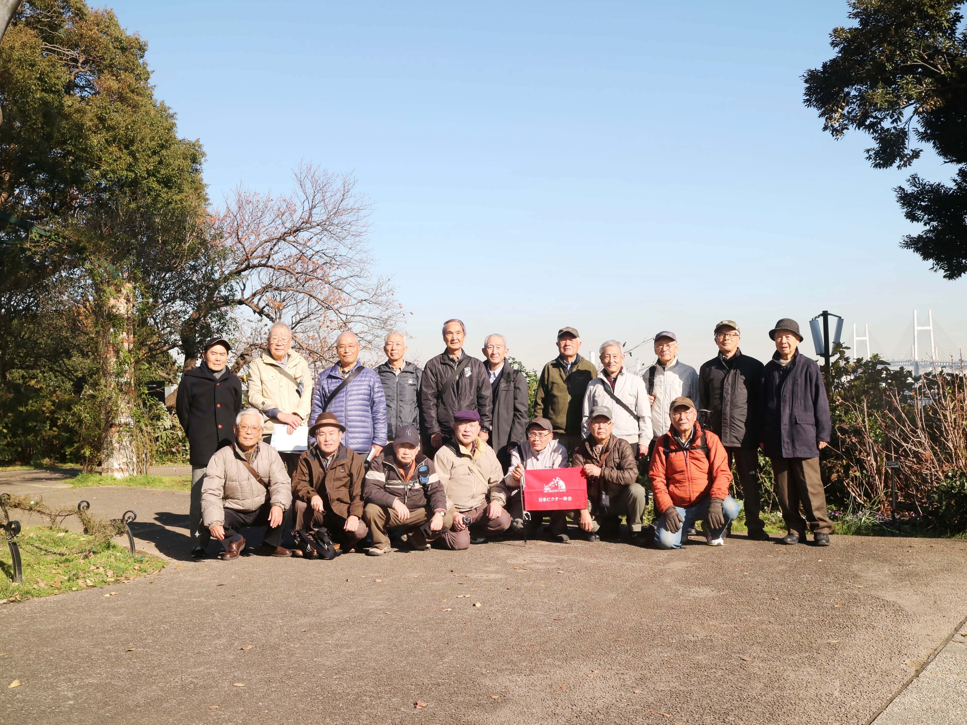 ◇メモ 今年最終のイベントは、山手西洋館巡りと納会です。絶好のハイキング日和の中、JR石川町駅前に19名が集合。 駅前で朝礼を行い9時45分に出発。歩くこと15分程で元町公園に到着。程なく最初の目的地ベーリック・ホールに入る。 無料のホール内を十二分に見学する。館内はクリスマスの飾りつけが見事でした。 次にエリスマン邸・山手234番館を足早に見学して、10時30分 横浜イギリス館に到着する。 広い館内を見学し園内からベイ―ブリッジを背景に集合写真を撮る。 良く晴れ渡った港の見える丘公園を散策して11時10分に元町・中華街駅に到着する。 ここから、みなとみらい線に乗車して横浜駅西口を目指す。 ◇ハイキング催行記録 これより納会です 師走の人ごみの中、ホテル・ザ・ノット横浜(旧横浜国際ホテル)に11時20分に到着。納会のみの参加者と合流し納会出席者は総勢44名となり、 2階松竹の間で12時から納会が始まる。 第1部は福山さんのいつもながらの流暢な司会で始まり、式次第に則り参加者の笑顔が絶えない和やか中で進行する。 特筆すべき出来事は最年長の田中光義(90歳)さんが、残念ながら今日の納会で退会される事です。 第1部の式次第(抜粋) 1)代表幹事挨拶(高橋武久) 2)表彰式 皆勤賞:多田 晋、小池由美子、山内浩司、新谷則雄 (4名) 精勤賞:山本三樹夫、福山宰治 (2名) 努力賞:生江 勲、 (1名) 特別功労賞:中平 勇(1名) ◇参加者 44名(敬称略) 田中光義、稲葉全彦、神 輝彦、後藤 孝、小倉通男、細谷 保、山本三樹夫、舩坂栄一、 大浦賢三、中平 勇、浅井信義、大曽根 収、山田勢津子、太田一穂、菊池譲三、藤森文夫、 川崎勝弘、成澤通子、三木吉弘、高橋武久、渡辺信久、脇坂宜志、戸川照子、弘海昭雄、 土井繁紀、生江 勲、南 健輔、 菅野 敏、吉本 稔、乾 紀美子、橋本 勝、小池由美子、 加部祥司、松山暁紘、平野 猛、加藤博紀、 山内浩司、新谷則雄、古林 茂、保田憲一、 景山康二、根井 淳、福山宰治、多田 晋 ↓以下の写真はクリックすると大きくなります。↓
