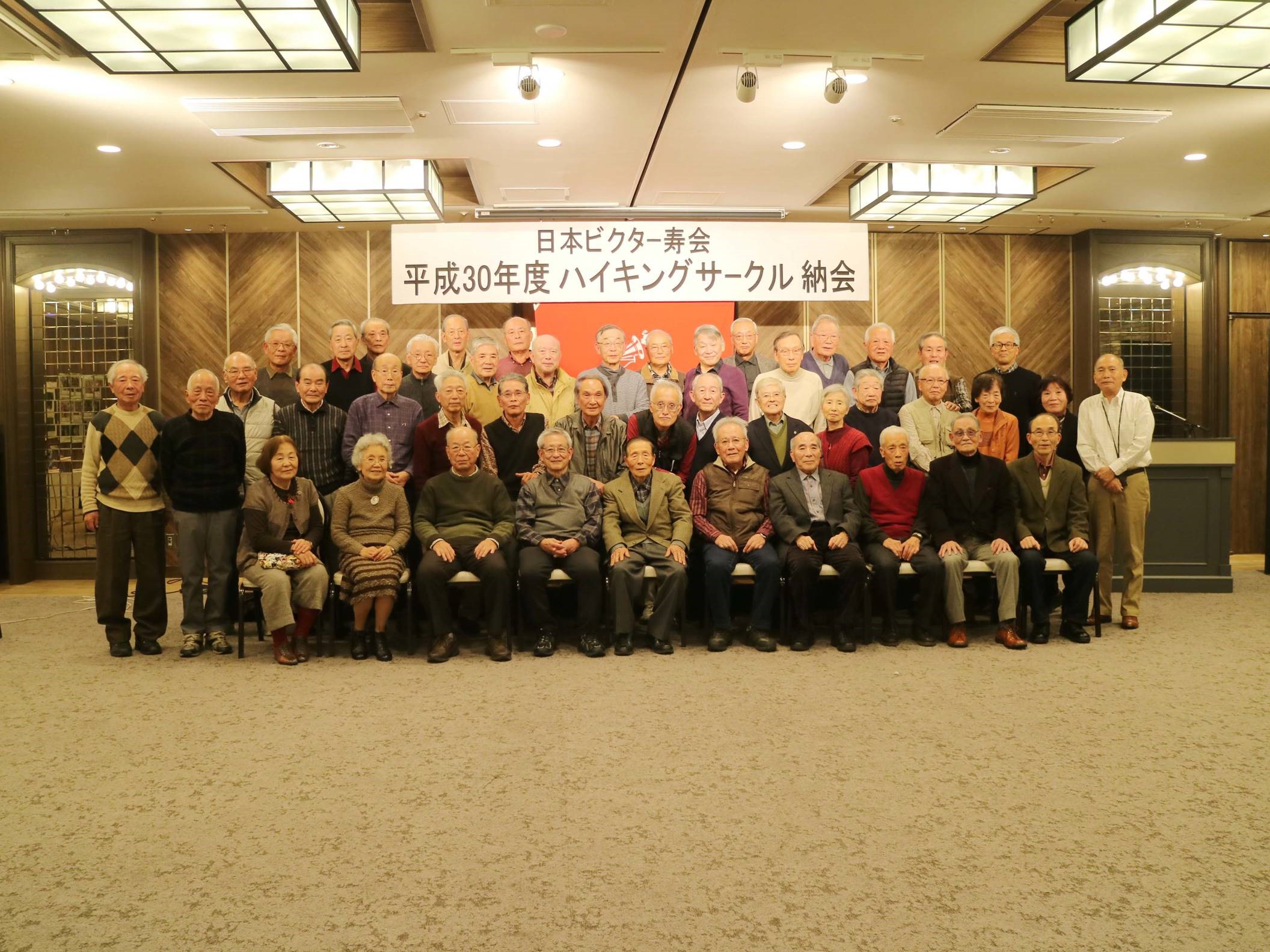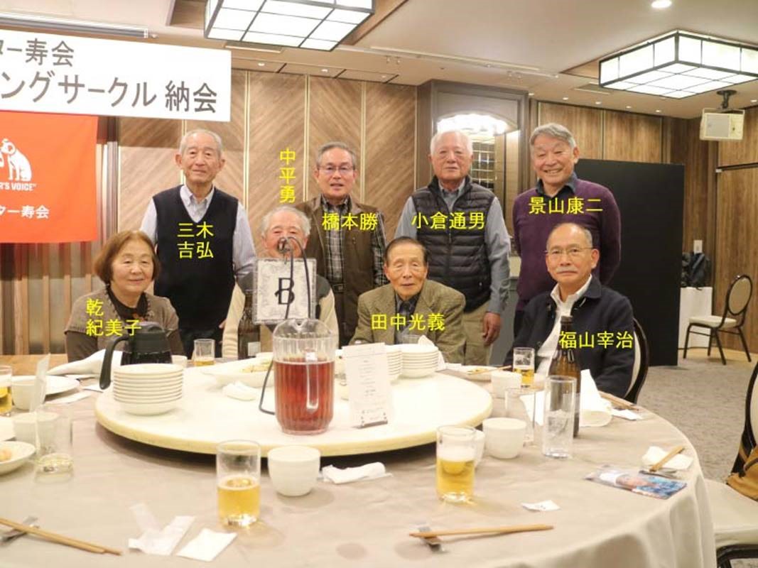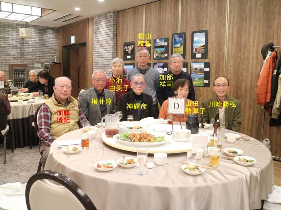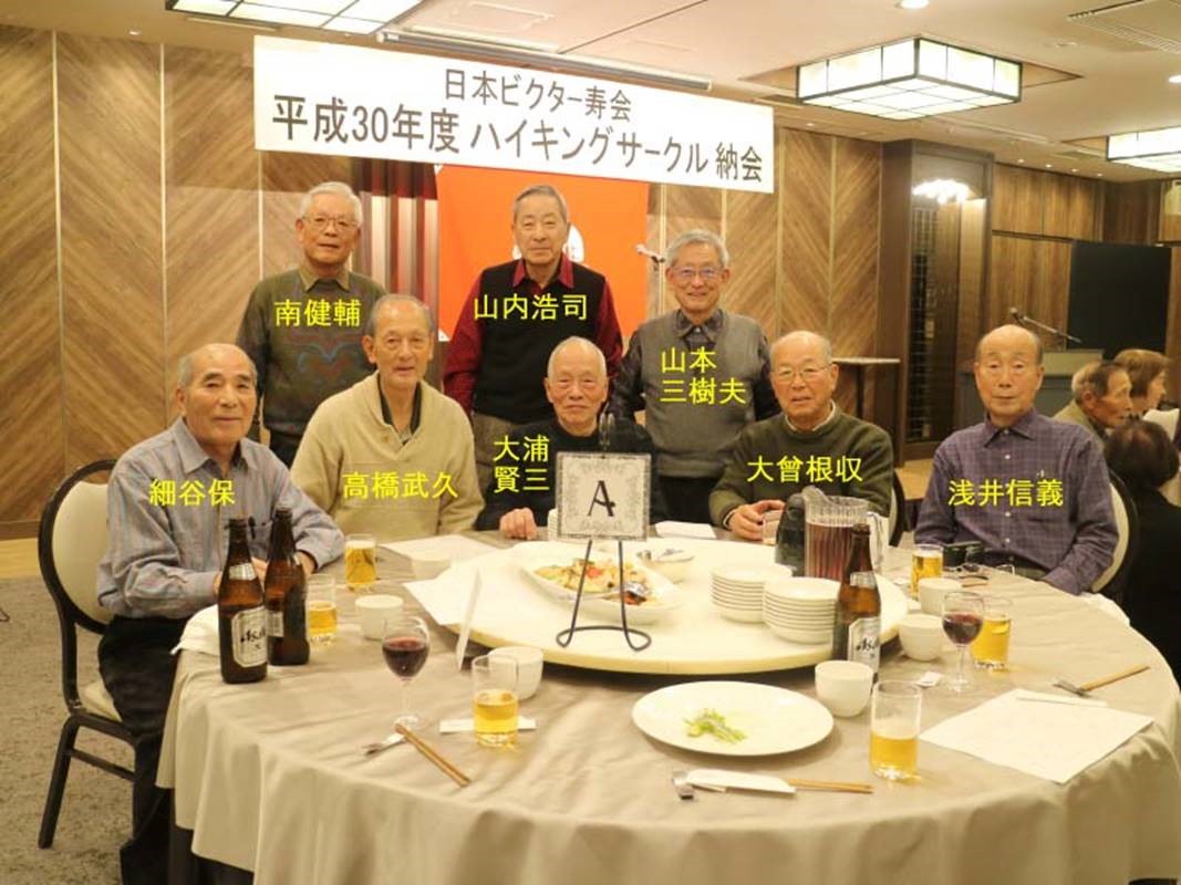 ◇メモ 今年最終のイベントは、山手西洋館巡りと納会です。絶好のハイキング日和の中、JR石川町駅前に19名が集合。 駅前で朝礼を行い9時45分に出発。歩くこと15分程で元町公園に到着。程なく最初の目的地ベーリック・ホールに入る。 無料のホール内を十二分に見学する。館内はクリスマスの飾りつけが見事でした。 次にエリスマン邸・山手234番館を足早に見学して、10時30分 横浜イギリス館に到着する。 広い館内を見学し園内からベイ―ブリッジを背景に集合写真を撮る。 良く晴れ渡った港の見える丘公園を散策して11時10分に元町・中華街駅に到着する。 ここから、みなとみらい線に乗車して横浜駅西口を目指す。 ◇ハイキング催行記録 これより納会です 師走の人ごみの中、ホテル・ザ・ノット横浜(旧横浜国際ホテル)に11時20分に到着。納会のみの参加者と合流し納会出席者は総勢44名となり、 2階松竹の間で12時から納会が始まる。 第1部は福山さんのいつもながらの流暢な司会で始まり、式次第に則り参加者の笑顔が絶えない和やか中で進行する。 特筆すべき出来事は最年長の田中光義(90歳)さんが、残念ながら今日の納会で退会される事です。 第1部の式次第(抜粋) 1)代表幹事挨拶(高橋武久) 2)表彰式 皆勤賞:多田 晋、小池由美子、山内浩司、新谷則雄 (4名) 精勤賞:山本三樹夫、福山宰治 (2名) 努力賞:生江 勲、 (1名) 特別功労賞:中平 勇(1名) ◇参加者 44名(敬称略) 田中光義、稲葉全彦、神 輝彦、後藤 孝、小倉通男、細谷 保、山本三樹夫、舩坂栄一、 大浦賢三、中平 勇、浅井信義、大曽根 収、山田勢津子、太田一穂、菊池譲三、藤森文夫、 川崎勝弘、成澤通子、三木吉弘、高橋武久、渡辺信久、脇坂宜志、戸川照子、弘海昭雄、 土井繁紀、生江 勲、南 健輔、 菅野 敏、吉本 稔、乾 紀美子、橋本 勝、小池由美子、 加部祥司、松山暁紘、平野 猛、加藤博紀、 山内浩司、新谷則雄、古林 茂、保田憲一、 景山康二、根井 淳、福山宰治、多田 晋 ↓以下の写真はクリックすると大きくなります。↓