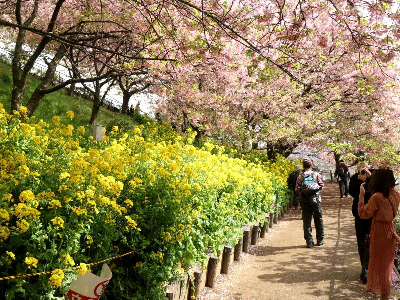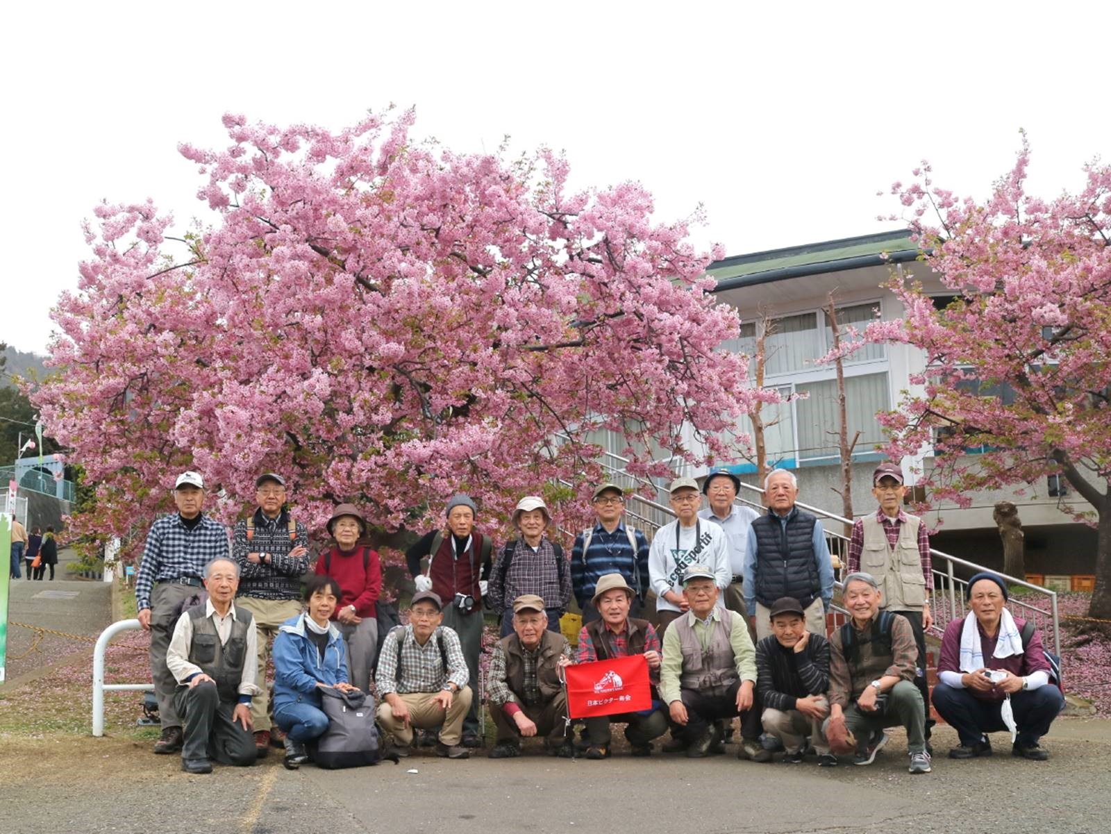 ◇ハイキング催行記録 ◇参加者19名(敬称略) 稲葉全彦・後藤 孝・小倉通男・山本三樹夫・井澤 章・中平 勇・藤森文夫・川崎勝弘・ 成澤通子・南 健輔・菅野 敏・多田 晋・橋本 勝・山内浩司・新谷則雄・景山康二・ 根井 淳・稲葉令嬢・平野 猛 ◇メモ 昨夜の雨と天気予報ではかなり気をもんだ人もいたと思う雨マークでした。雨の心配があったものの19名が新松田駅に集合予定通り10時半満開の河津桜を見学に出発しました。目的の西平畑公園の河津桜は集合場所から見上げても今が盛りの満開であることが良くわかります。途中には延命寺と言うお寺があります。 このお寺は萬松山延命寺といい開山は文明4年(西暦1472年)と大変歴史のある立派なお寺です。お寺のすぐ後ろが東名高速さらに後ろが目的の西平畑公園になります。延命寺での見学、参拝を済ませ急坂が続きます。まずは東名高速の下をくぐると山桜が葉を出し我々を迎えてくれました。 このコースは初めてで案内用標識もなく若干の不安がつきまといましが無事目的地方面に合流できました。河津桜は今が見どころ最高の時期に来ることが出来ました。又菜の花も満開で黄色とピンクの花盛りが実に素晴らしいコラボでした。今日の夜は雨模様の予報もありましたので本日の散策は最高の時期となりました。 この西平公園は晴れていると富士山はもとより矢倉岳、金時山、明神ヶ岳など足柄の山々が連なりパノラマが実に素晴らしい見どころのある公園です。富士急バスも駅と公園を10分間隔で運転していて見学者で混雑しておりましたが雲行きが怪しくなって来たので早めに下山してJR松田駅で全員無事解散しました。 |