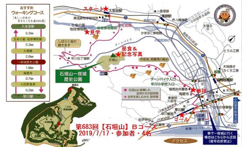 ◇催行日 2019年7月17日(水) 天気 晴れ ◇コース 箱根登山鉄道入生田駅 10時集合 入生田駅→太閤橋→関白林道→石垣山→早川駅分岐→海蔵寺→JR早川駅 |