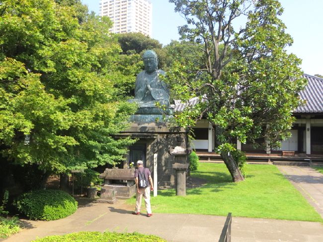 ◇メモ 朝10時、日暮里駅北改札口前に11名集合。それほど暑くなく風が涼しい。朝礼後西に向け出発、直ぐ左へ階段を上り谷中霊園に入る。明治7年開設の由緒ある都立霊園である。谷中霊園を通り天王寺にゆく。元禄3年(1690年)に作られた唐銅丈六釈迦がある。 90年)に作られた唐銅丈六釈迦がある。谷中霊園に戻り再び御殿坂を登り下りになるところで左に曲がり台東区立朝倉彫塑館へゆく、彫塑家浅倉文夫(明治16年〜昭和39年)の住居とアトリエ跡である。また御殿坂を下り「夕焼けだんだん」に出る、階段は西方の谷中銀座を向いて下っており夕焼けと谷中銀座の明かりが郷愁をそそるらしい。だんだんを通り過ぎるとレトロな谷中銀座に出る。 下町の商店街で洗練されておらず誠に野暮ったい。そこがいいとこらしい。外人が案内書片手に見物している。どんなふうに感じているのだろうか。更に下り夜店通りを左に曲がり指人形笑吉工房に向かう、指人形の制作過程や人形劇を上演している。ちょうど上演中であったので工房を見ることができなかった。テレビにも登場するので人形をみればあーあれかとわかる作風である。 次に神田白山線を東に坂道を登る。途中で全生庵にお邪魔する。全生庵は山岡鉄舟居士が徳川幕末・明治維新の際、国事に殉じた人々の菩提を弔うために明治十六年に建立した。金ピカの観音様が建立されており、個人で永代供養もやってくれる。身寄りのない方はどうぞ。坂道の頂上で上野桜木町に上野桜木あたりという古い家屋を改装した商店が何軒かでき、谷中ビールを売っている、但し値段が高い。 旧吉田屋酒店をそのまま保存している店もあり、レトロなカヤバ珈琲店もある。オバサマ方がサンドイッチを食べていた。次に言問通りをくだり大名時計博物館前を通り根津神社に着く。そこで昼食を食べ、集合写真を取る。春にはツツジ祭りが開かれるところである。根津神社を後にして不忍池を通り、上野西郷さんの銅像の下で全員無事解散する。歩数14,000歩 ◇ハイキング催行記録 ◇参加者11名(敬称略) 山本三樹夫、城市靖三、成澤道子、高橋武久、戸川照子、土井繁紀、菅野 敏、山本 治、 新谷則雄、保田憲一、生江 勳 |