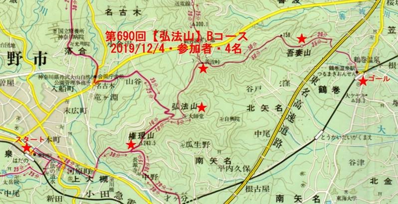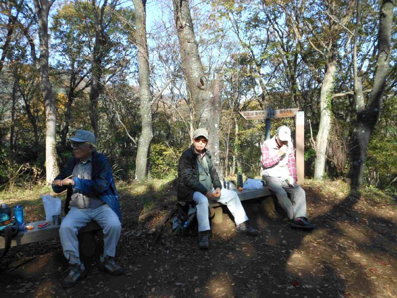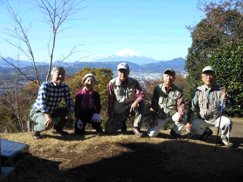 ◇催行日 2019年12月4日(水) 快晴 ◇コース 小田急線秦野駅 9時集合 秦野駅→(40分)権現山(244m)→(10分)弘法山(237m)→(30分)善波峠→ (30分)吾妻山→(25分)鶴巻温泉駅 歩程・135分 |