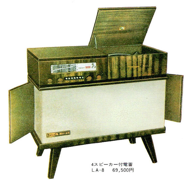 LA-8は電蓄として初めての横長デザインであり次世代のステレオ電蓄に大きな影響を与えたのであった。