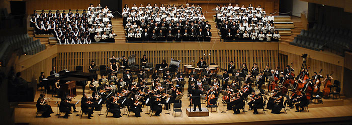 左右一杯に配置されたオーケストラから発し、加えてホールの両サイド壁の反射音等、横に幅広く展開された音波群を聞いている筈。近似的にもこのパターンに
