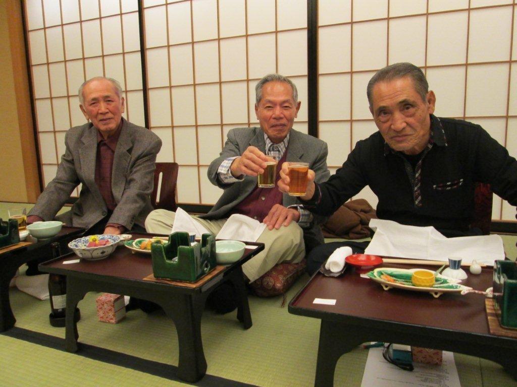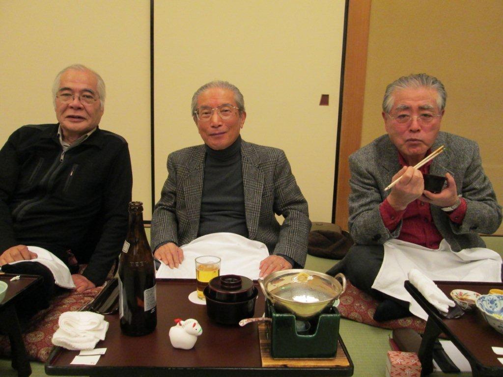 日時 1月19日(日) 場所 名古屋駅前 舞鶴閣 参加者 19名 当日名古屋は、最低気温 0度と厳しい冷え込みとなりましたが、19名の参加で 賑やかに行われました。 今年喜寿を迎えられる塩崎宏さん上田秋彦さん服部文雄さんのお祝いをした後 今年年男になられる 近松進さんの乾杯のご発声で開会となりました。 元気な様子をお送りします。
