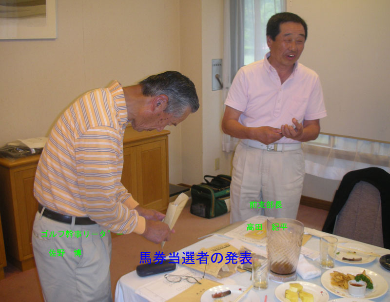 日 時: 平成24年6月5日(火) 晴れ時々曇り 場 所: 桜川市 岩瀬桜川CC 参加者: 14名 結 果: 優 勝 大沢 敏さん (グロス:91 ネット:77) 準優勝 山口 昇作さん (グロス:95 ネット:78) 第3位 佐野 博 (小生) (グロス:87 ネット:79) 第4位(支配人賞)高田紀平さん べスグロ賞 鳥養 徳夫さん※毎回指定席 (グロス:85) ラッキー7賞 佐藤 順次さん ワンワン11位賞 佐藤 武さん ドラコン 佐藤 順次さん、佐野 博 ニアピン 高田 紀平さん、佐野 博 優勝の大沢さんは17回にて初優勝を果たし、鳥養さんを目標に頑張ったとのこと。まだまだ元気なプレーでした。ともあれ梅雨前の好天に恵まれ、新緑さわやかなプレーに、お互いの健闘をたたえて無事終了。次回秋18回大会は10月25日(木)予定。 |