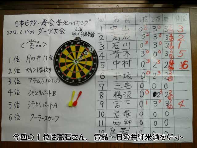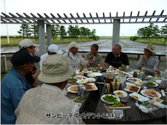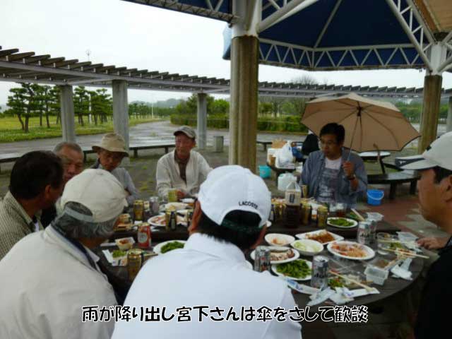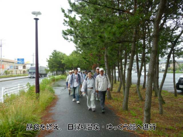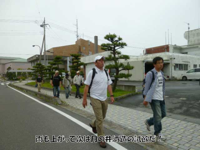日 時:平成24年6月16日(土) 参加者:12名 コース:大洗駅→幕末と明治の博物館→めんたいパーク(見学)→大洗海浜公園(昼食)→ ゆっくら健康館(入浴)→月の井酒造(試飲)→大洗駅 <全長9km ほぼ平坦なコース> 当日は台風接近で天気予報は雨ながらリーダー(石川)の判断で決行。9時過ぎに水戸駅に集合し、大洗鹿島線で大洗駅に到着すると早くも雨が降り出し、傘をさしてスタート。 駅前から広いバイパスを通って最初の休憩ポイント「幕末と明治の博物館」は時間調整のみとし、その後の大洗ゴルフ場へのルートは雨のためカットして大洗海岸方面へと進行。 海岸通に出た後、明太子の老舗「かねふく・めんたいパーク」で製造工程を見学し、軍艦巻きなどを試食、直売店ではおみやげも購入しました。 雨は小降りの中、さらに海岸通をマリンタワー方面へと進み、昼食場所の大洗海浜公園・サンビーチ中央テントを目指してハイピッチに。 12時過ぎに全員がテント下に到着すると、いつものように途中で抜けた昼食担当の幹事(西郷、青木)が既に焼鳥、枝豆などのツマミをテーブルに並べ終え準備は完了。 早速、ビールで乾杯!青木シェフによる今回のお楽しみレシピはシシャモやイカの姿焼きにニンニク焼き、最後はメロンのデザートまで次々に登場して全員が満腹状態。 途中で雨が強くなってテントから外れた人は傘を広げての歓談となり、今回は君塚さん(労組委員長)、宮下さん(労組OB)もゲスト参加(将来の会員見込み)し、楽しい話題で大いに盛り上がりました。 雨がやんだ午後2時過ぎ、全員で後片付けをして約1km先にある「ゆっくら健康館」でお楽しみの入浴タイム。 入浴後の休憩では全員がダーツゲームで賞品を競い合い、高石さんが見事1位を獲得。 帰路は大洗の古い街並みを通るコースで、その途中、創業慶応元年の蔵元で新製法オーガニック純米酒で有名な「月の井酒造」(2006年、第7代坂本敬子社長の酒造りがテレビドラマ化)に立ち寄りました。早速、試飲コーナーでお勧め「和の月」など4種類をじっくり味わい、美人女性に勧められたためか?ほとんどの皆さんが店内で購入。 最後に店の前で記念撮影をし、急ぎ足で大洗駅へと直行、ギリギリで電車に飛び乗って午後4時には水戸駅に到着、改札口前で解散しました。 今回は見学や試飲など盛り沢山の企画で、雨ながらも思い出に残る楽しいハイキングでした。 <参加者(敬称略)> 鳥養徳夫、井坂昌生、高石勝巳、青木正彰、鵜沼 徹、中山周治、三宅政康、中村幸男、 石川徳治(リーダー)、西郷治男、君塚範男(ゲスト)、宮下有一(ゲスト) 以上12名。 |