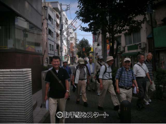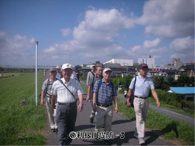 日 時: 平成24年10月5日(金)参加者:15名 コース: JR取手駅→長禅寺→坂道(峠坂、さくら坂、雁耕坂等)→取手宿本陣→八坂神社→利根川堤ヘルスロード→面足神社→かたらいの郷(昼食、入浴)→キリンビール取手工場(見学、試飲)→取手駅西口(解散) <全長11km>(ハイク7km+バス4km) 9時に取手駅東口に集合した参加者15名は、初めに今回のコースガイド役である取手市在住・酒井達夫さんからコースの説明を受けた後、9時半に出発。 酒井さんは取手坂道愛好会の会長で、長年の活動の苦労話をユーモアを交えて説明、周辺史跡の名解説には全員が感激しました。 それによると、取手市は大小400以上の坂道があるものの名前のついていない坂が多く、坂道愛好会では周辺住民へのアンケ−トの実施や行政への陳情を行い、さくら坂など多数の命名をすると共に街角の道標なども設置してきたそうです。 スタートから400mほど進み、坂を越えると長禅寺に到着。ここは深山霊谷の趣を残し山門を抜けると、さざえ堂様式という三層建築(外見は二層)の三世堂(県指定文化財)があり、平将門の祈願寺として承平元年(931)に創建されたと伝えられています。 更に坂道をいくつか越え、取手宿本陣へと進行。江戸時代の参勤交代で宿泊、休憩に利用した家を本陣と呼び、ここの染谷家住宅(県指定有形文化財)は寛政7年(1796)に建築されたもの。まずビデオで建屋の解体から修復、保存の映像を見た後、内部をじっくりと見学、こうした貴重な遺産を維持していく意義を痛感しました。 取手宿本陣を出発し、次は八坂神社を参拝。その後、文化センター横を通って利根川堤を目指し進行、堤に登ると眼下には緑地公園、ゴルフ場も見えてきました。堤はサイクリングロ−ドでもあるため、自転車とウォ−カーが交錯、接触の危険が再三あり、交通マナー順守を叫びたい気持でした。途中、展望台があり一休みしながら景観を楽しみました。 次のポイントは取手市一の高台(海抜30m)に位置する面足神社で、境内に入って参拝。その後の進路では想定外ながら、ビクタ−マ−クの看板を温存した家(旧電気店)に遭遇し、ちょうど居合わせた旧店主との話が盛り上がり一同感激しました。 いよいよ正午を過ぎ、昼食場所である福祉施設・かたらいの郷に到着。台風18号の余波で30度を超える暑さにグッタリ、早速風呂へ直行組と弁当組とに別れました。乾いた喉にビ−ルは格別!最後のキリンビ−ル工場での試飲のためか、昼食会場のアルコ−ル消費量は少なく意外でした。 その後の懇談タイムでは他のグル−プ客によるカラオケのオンパレ−ドにウンザリ、話が聞こえないために休憩中の歓談が出来ず、大変残念でした。 暑さと疲れのためか、午後に予定していた本願寺、光明寺の拝観を中止し、最後の楽しみのキリンビ−ル取手工場までは、かたらいの郷発の市のコミュニティーバスで移動。 ビール工場の見学時間は70分(試飲20分)で、ビデオ上映後、バスで移動して工場内を見学。製造工程は自動化が進み、人の少なさと瓶のリサイクル率100%には驚き。試飲タイムもあっという間に過ぎ、全員ホロ酔い気分となり帰路の取手駅までのウォ−キングも中止。路線バスに乗車し取手駅西口に予定の5時に無事到着し、解散しました。 <参加者> 中村藤和、石上 明、田村芳直、対比地省造、酒井達夫、鈴木 亨、佐藤 武、横内隆昌、 室伏隆幸、山田敬成、一ノ宮武夫、古矢 昇、佐野 博、宮本久雄、熊谷 盛 以上15名。 |