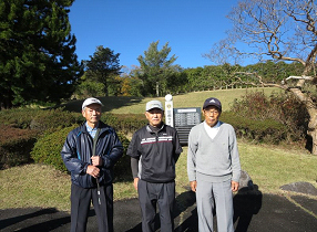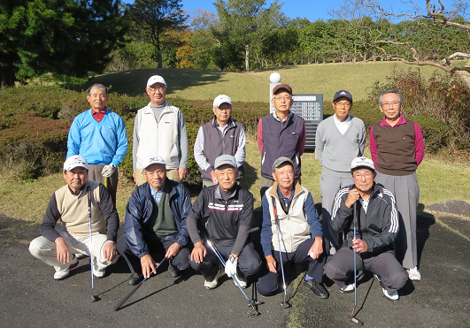 当初10月22日開催予定でしたが、生憎の雨のため止むを得ず11月13日となりました。この日は快晴で風もなくコンデションは最高でしたが、健康第一が目的なためかスコアは意外に伸びず 特にグリーンに苦労したようです。 結果は、ひとり80台をマークした熊谷さんがBG賞を確保し、寿会支部長の重荷から解放されたから?とのこと。優勝は大沢さん、準優勝の鳥養さんは珍しくOBや池ポチャをやりながらも、きちんと入賞されているのは見事でした。 次回は来春5月、前泊ハーフで富士笠間CCの提案があり、検討の上で実施予定。 |