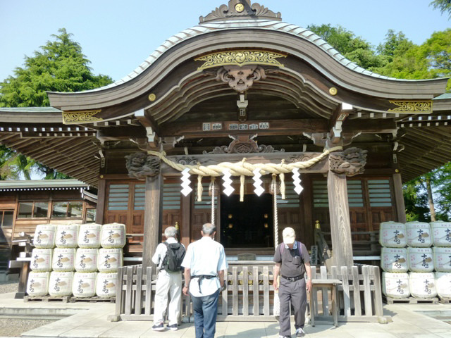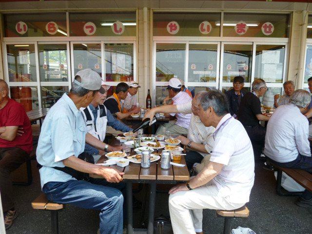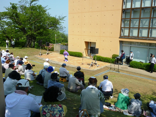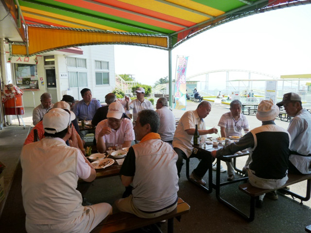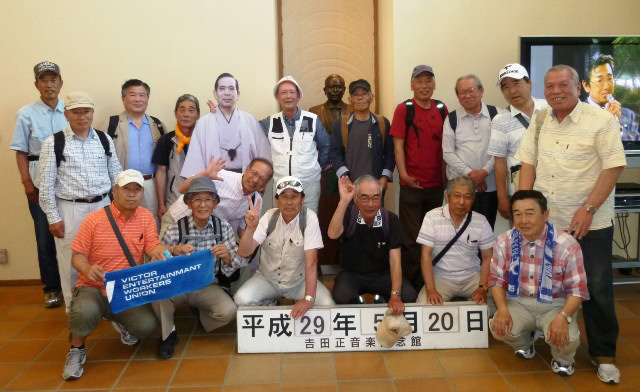 ◇日 時:平成29年5月20日(土) ◇コース:日立駅〜日立郷土博物館〜(昼食)〜吉田正音楽記念館〜神峰神社〜日立駅 <全5km> ◇参加者:17名 (県北会員16名+ゲスト1名) 今回は初めて日立市へと足を伸ばし、ウォーキング&勉強(郷土博物館や音楽記念館の見学)という企画で実施し、当日は夏のような暑さで汗ばむ陽気の中、過去最多の17名が参加しました。 午前9時、水戸駅に集合したメンバーは常磐線に乗車して日立駅で下車、10時前に駅前を出発して平和通りから国道6号線を右折、緩やかな坂を下って最初の目的地である郷土博物館を目指しました。10時半に博物館に到着し、直行組2名も到着しました。 郷土博物館は日立の歴史・産業(日立製作所創業からの移り変わり)、庶民の暮らしや祭りなどの資料や豊富な収蔵品が展示されており、社会科や歴史の勉強になりました。また同時開催の県立近代美術館移動展示では明治時代の洋画や現代絵画を興味深く鑑賞しました。その後、神峰公園の斜面を上って昼食会場のレジャーランドに11時半過ぎ到着。 売店前のテーブル席(予約済)でビール(缶ビール持込可)で乾杯、暑さと坂道での喉の渇きからビールの味は格別!今回は一部持込みツマミ以外は売店からカラ揚げ、ポテトフライなどを調達。途中で簡単なゲームもやり、昼食は好きなメニュー(カツカレー、天ざる、ラーメンなど)を食べました。 昼食後は急いで後片付けし、1時半からのコンサート会場の屋外ステージへ直行。このコンサートは吉田正音楽記念館の入場100万人達成記念の一環として行われ、ビクター新人アーティストの飛鳥とも美さん、大城バネサさんの2人が懐かしい吉田メロディーを含め各々数曲を披露し、最後には「いつでも夢を」を観客も一緒になって全員で歌いました。 ※吉田正音楽記念館:平成16年4月、吉田正先生の生誕地・日立市に開館、日立市が管理運営。 コンサート後は記念館ロビーで集合写真を撮り、ゲームの上位入賞者に賞品が渡された後、帰路に着きました。帰りは公園を下った後、神峰神社を参拝して路線バス乗車組と、往路と同じく駅まで歩く組に分かれ、3時半過ぎ日立駅に全員集合。上り電車に乗車し、午後4時半過ぎ水戸駅で解散しました。 |
