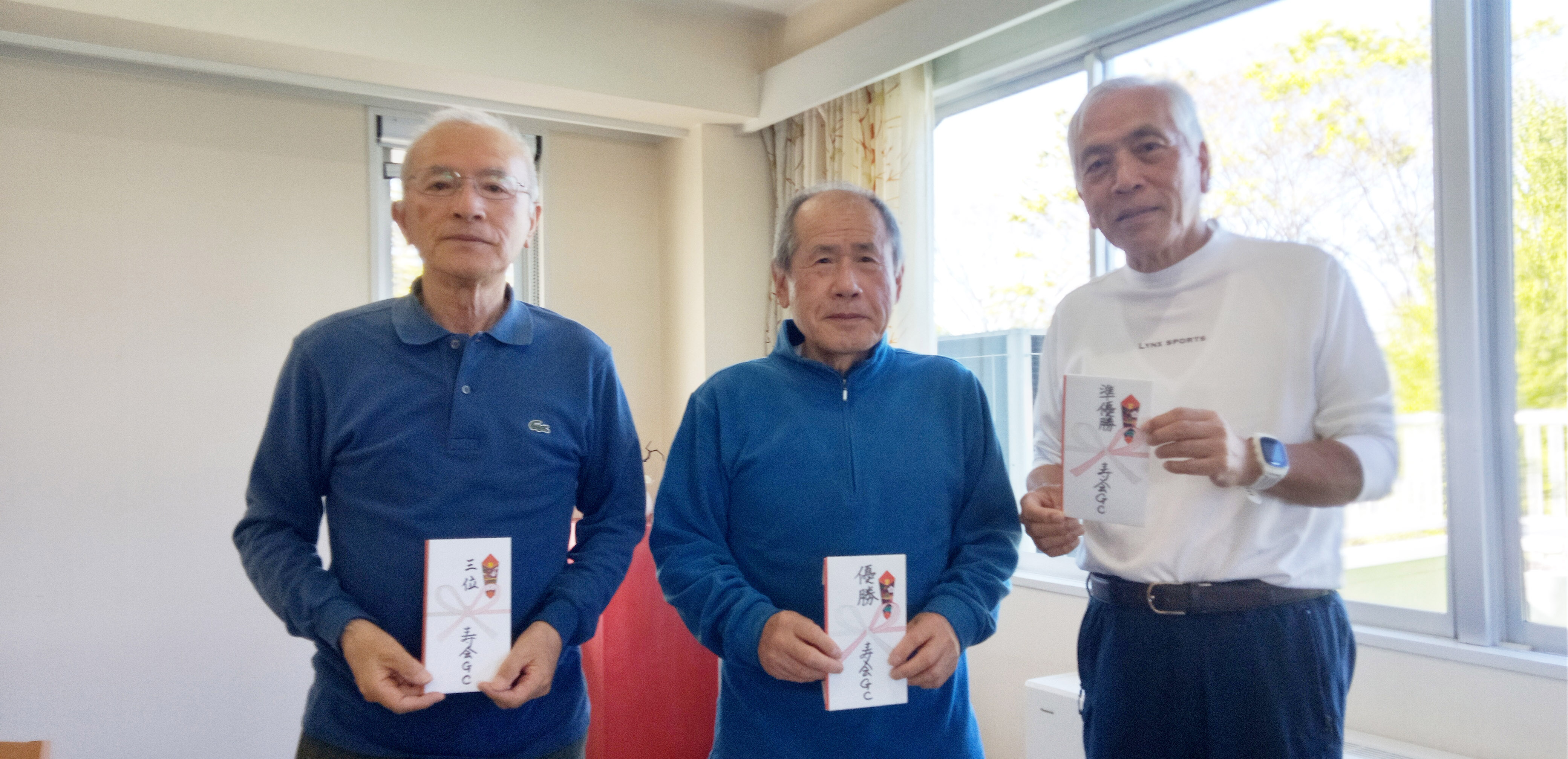 優勝は体調不良で久しぶり参加の飯塚千明さん、準優勝は石井健久さん、第3位は若松英夫さんでした。