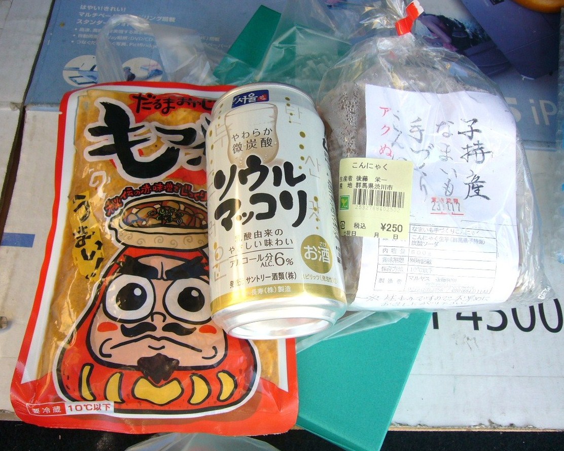 子持産なまいも手づくりこんにゃく ¥250→アク抜キ、生姜醤油でいかが。
