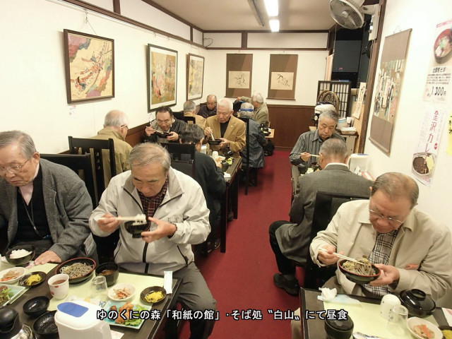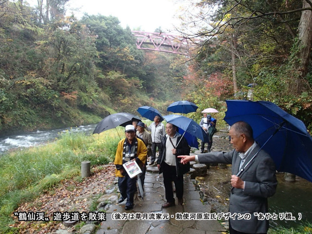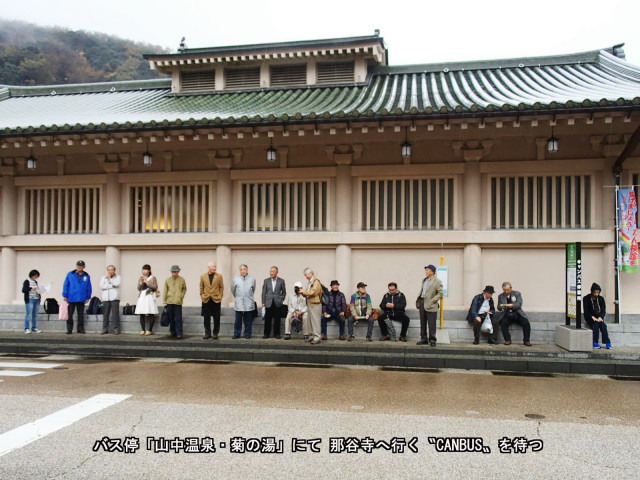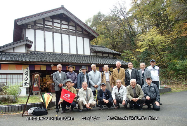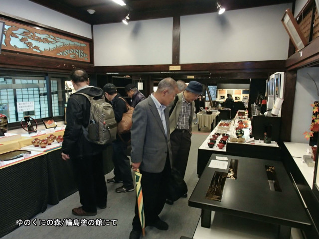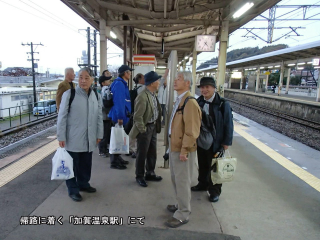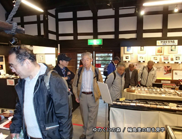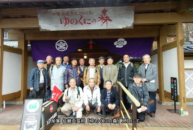 特急サンダーバード5号に大阪・京都・堅田から分乗した参加者15名は、加賀温泉駅で下車し、「ゆのくにの森」へ。茅葺き屋根の古民家が移築された各館で、加賀の伝統工芸品の数々に触れ、和紙の館で昼食。 ◇参加者(敬称略・50音順)