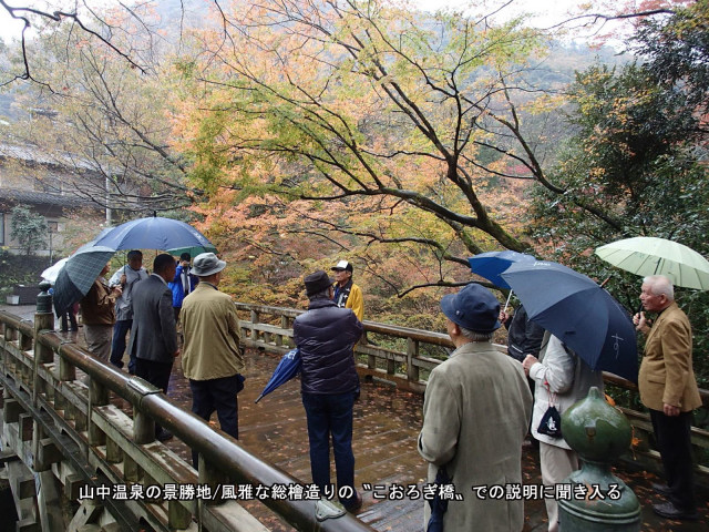 ◇実 施 日:平成27年11月17日(火)〜18日(水) ◇旅行形態 旅行クーポン利用によるフリープランの1泊2日の旅 ◇行程および内容 【1日目】大阪 → 加賀温泉駅 → ゆのくにの森 → 山中温泉/鶴仙渓 → 温泉街遊覧 → 翠明(泊)