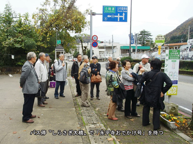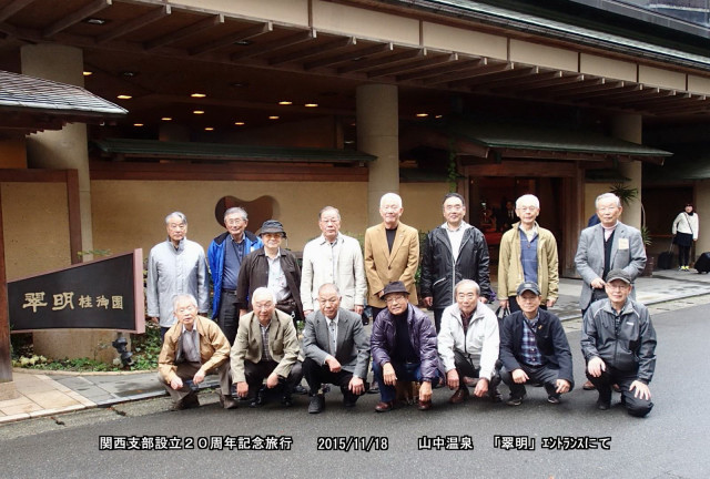 〜 カニづくし会席と錦秋の北陸路散策 〜 旅行サークル担当 堀 伊佐夫 支部が設立されて20年目を迎える今年度は、記念旅行と旅行サークルの旅行を兼ね、「本場でカニが食べたい」との皆さんのご要望により、今まで行ったことのなかった錦秋の北陸路を旅しました。 2日間共に雨にたたられた生憎の天候となりましたが、名だたる景勝地で素晴らしい絶景を満喫、美味しいカニづくし会席を堪能し、事故もなく全員無事で帰阪しました。 下の写真をクリックすると大きくなります