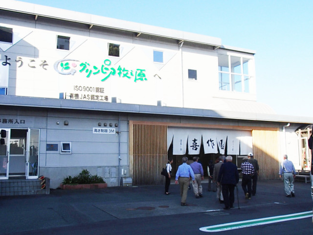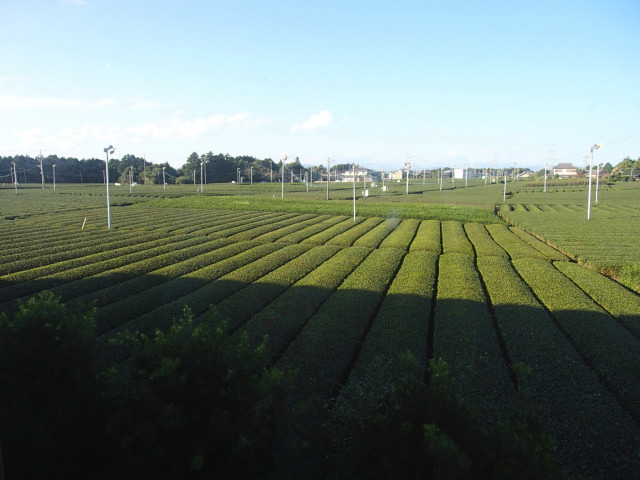 まずは名物のうな重≠フ昼食を味わい、近くの銘菓うなぎパイ≠フ工場見学、試食・買物ののち牧之原へ。東京ドーム1,000個分という東洋一の広さを誇る大茶園に囲まれたグリンピア牧之原≠ノて製茶工場を見学し、風味豊かな銘茶を試飲。延々と続く平地栽培のお茶畑は圧巻で、気候温暖な地であることを痛感。