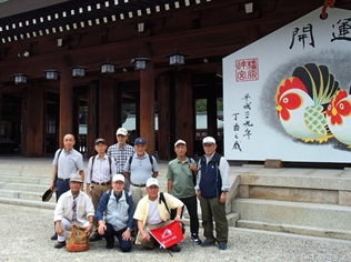 橿原神宮では、第一代神武天皇を祀ってあるので、創建はかなり古いと思っておりましたが、なんと明治との事 古事記によって創られたと、言うのが納得出来ると変に感心致しました。 日本最初の本格的な都「藤原京」を資料館で、ジオラマを見て説明をうけ、実は今回メインテーマである大和ぼけ封じ霊場「おふさ観音」で、有り難い話を聞き、ボケにならずピンピンコロリの人生が送れますようにお参りいたしました。 午後4時前に大和八木駅で解散し、反省会(酒宴)をやる為、開店している居酒屋をやっと見つけ、生ビール・酎ハイ・ハイボールの半額で大いに盛り上がり、各々帰途につきました。 ◇参加者 9名(敬称略) 市橋政弘 竹内秀男 谷口公玄 中塚順三 堀伊佐夫 増村正博 森江毅 横井 章 大西憲嗣 |