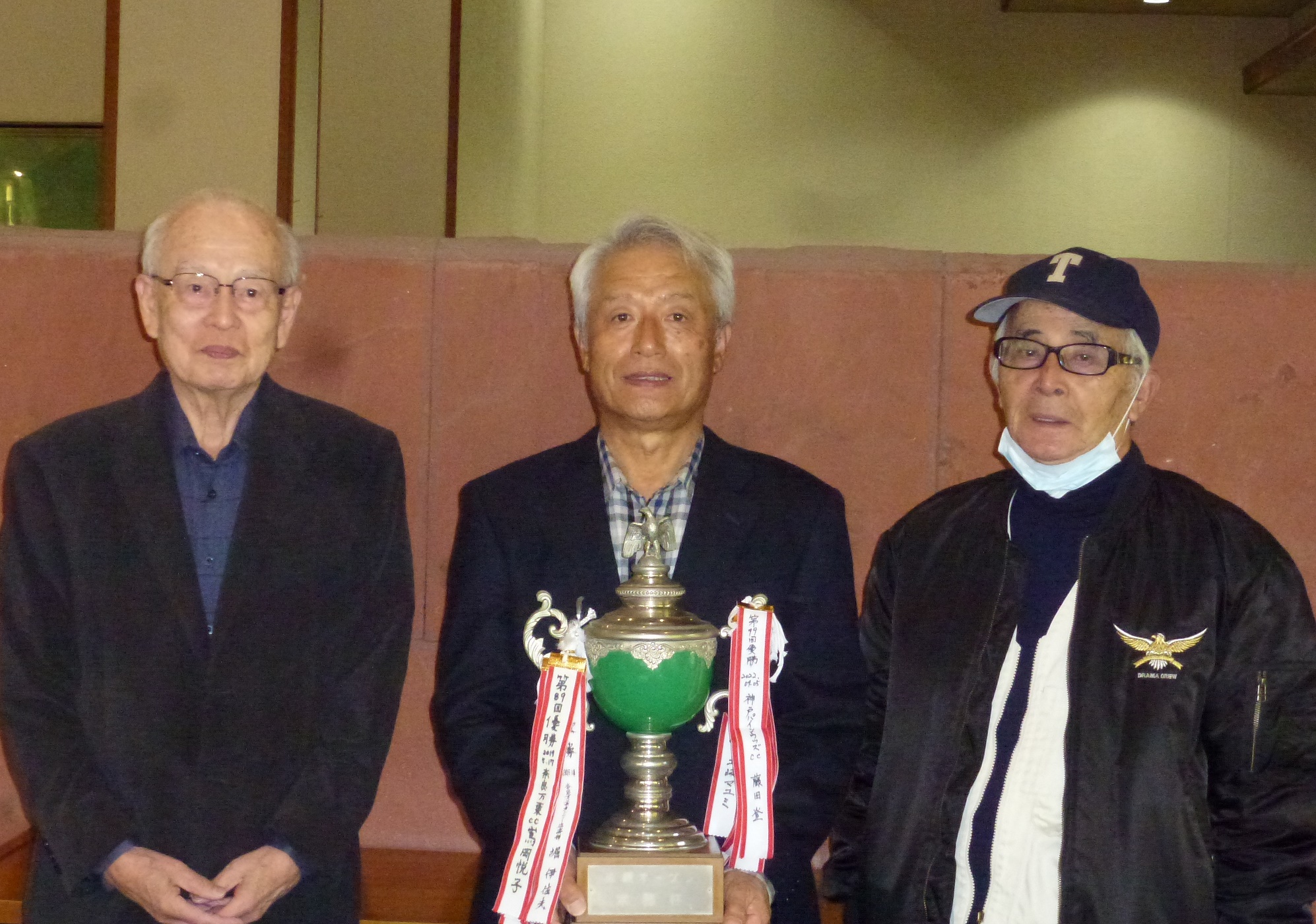 優勝した川瀬忠三さん、スタートホールのショットは70歳を超えてるとは思えない?豪快なティーショット。前の組が230ヤードの吹き流しを超えた事を確認してショットするも打ち込みとなってしまい、お詫びから始まる。(思いのほか飛ぶ可能性のある方はご注意!!)その後、気を付けてショットした為打ち込みは無かったが、豪快ショットの連続。(70歳を超えてもレギュラーティーでショットしているが、次回からはバックティーも??) 準優勝の熊野維人さんは本来の勝負強さを発揮してここと言うホールはきっちり押さえニアピン二つと、本人が3年ぶりと言うバーディーを奪う(あと僅かでホールインワンだったが)第3位の堀伊佐夫さんは体調不調?もあり、9大会ぶりの参加となり緊張感も半端でなかった様だったが、安定したプレーで入賞となつた。