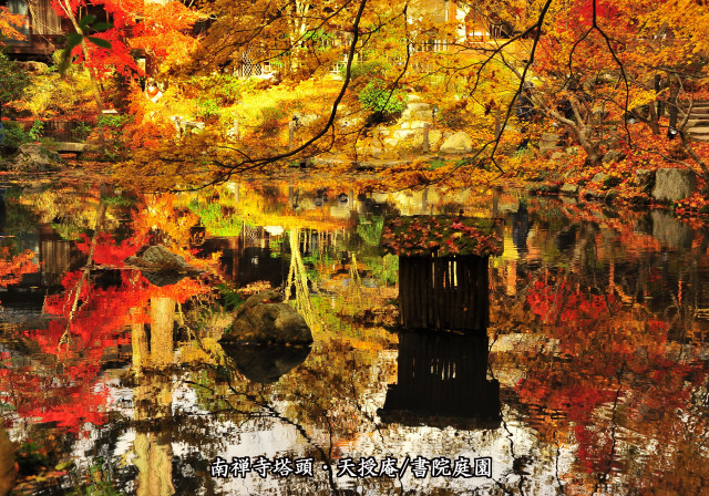 前庭の紅葉は既に散っており、書院南庭の池の周りが、池に映える紅葉で綺麗でした。