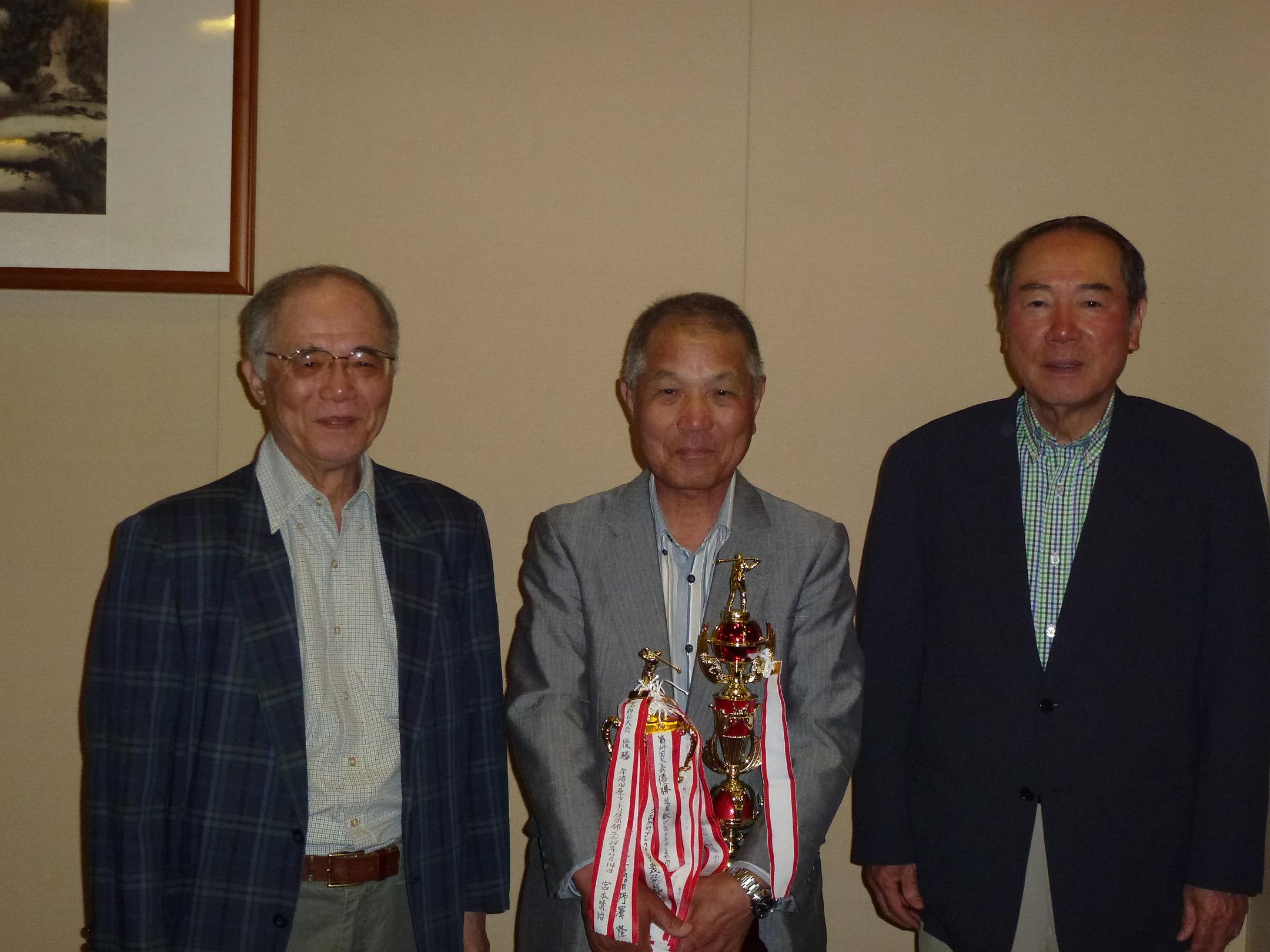 優勝され ました、宮本さんは、「あまり体調が良くなく無理が出来ませんので、常にフェアーウエイセンターにボールを集める事を念頭にプレイし ました。今回は61回〜70回の優勝者による、優勝カップの取り切りもかかっており、優勝できた事は、大変嬉しく思います」と語られ ました。