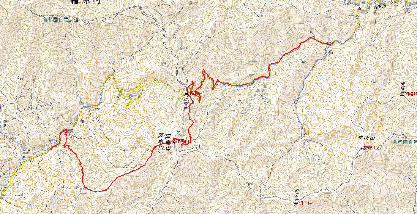 第150回ハイキングレポート記 中島 征雄 実施日 2015(H27)年11月26日(木) 天候 曇 気温 低い 行き先 陣馬山(標高 854m) コース 高尾駅北口1番バス停9:34=10:08陣馬高原下バス停10:14~10:35 陣馬新道登山口~11:20和田峠11:27~平坦コース~11:58陣馬山頂上12:28~12:40和田分岐~13:00沢井・落合分岐~13:30陣馬街合流~13:37和田バス停14:00=14:16藤野駅 参加者 折本 文夫、杉田 勝行、中田 信義、前北 勝司、野田 宏、中島 征雄 計 6名 概要 降り続いた雨もバスが終点陣馬高原下に着く頃(乗客は我々だけ)には上がって、この後降らないこ とを祈って10時14分に出発。木の枝から滴が落ちる中、車道を上る。10:35に陣馬新道入口(登山口)に着き、そのまま車道を和田峠に向かって上る。意外と急坂なので途中休みを入れながら登り続け、11:20和田峠に着いた。すぐあとに陸上自衛隊の車が2台着いたが、運転者のみ乗っていた。 休憩後、陣馬山山頂へは滑り易い直登コースを避け、頂上にある茶店の荷揚げ用の車が通る平坦コースを上る。平坦とはいうが急坂もあり、ぬかるんで歩きにくい所もあるが、峠まで舗装道路を長々と歩いてきたので、土の道は有難い。また、檜の林が雑木林に変わり、山に来た気がする。水場の先で新道コースと合流。その先に左右に道があり、今回は頂上まで少しは短いと考え右(荷揚げ用の車が通る)の道を選んだが、間違いであった。それはすごいヌカルみが続く道で歩けない。そのため道の脇のブッシュを歩かなければならなくなったのである。この道はトイレの傍に出、そこからは白馬像のある頂上まで直ぐであった。 12時、頂上に到着。頂上は雲の中で展望は全く無し。真っ白な雪を冠った富士山が見えるはずだったのに残念。まあ、雨に降られなかっただけでもよかったか。いつもは大勢の人で埋まっている頂上には、先程峠で見た自衛隊隊員が2名いるだけであった。食事をしようと思ったがベンチの下は水が溜まっていて座れない。そのため、白馬像の前で集合写真を撮って(隊員に撮ってもらった)、頂上のすぐ下の茶店の前のベンチで食事をとる。座ると寒くなり1枚着る。 頂上には大勢の自衛隊隊員が上ってきた。聞けば訓練で陣馬高原下バス停から奈良子峠経由で2時間かけて上ってきたとのこと。中には女性隊員もいた。頂上での登山者は男女1組2名のみ。 12時30分頃、和田バス停に向けて下山開始。長い階段の急坂そしてじぐざぐの坂を滑らないように 気をつけながらゆっくりと下ると平坦な尾根道に下りとなる。檜の樹林が続き薄暗い。12:40に和田へ の道を分け、そのまま尾根道を下る。13:00尾根道から右に折れ、和田の集落へ向かって下る。道は 細く落葉が積もっている。ジグザグに下りて行くと急に明るくなった。雑木林となり、木々の葉が黄色くな り、そして落ちて葉数が少なくなっていたのである。 足元に民家が見え、墓地の脇を過ぎたら、物凄く急な苔で滑り易い舗装道路となった。民家の間を通 って下りきると陣馬街道に合流する。13時37分、和田バス停に着き、14:00のバスで藤野駅に出た。 歩行距離:8km。 移動時間:2時間42分。 停止時間:44分。 以上