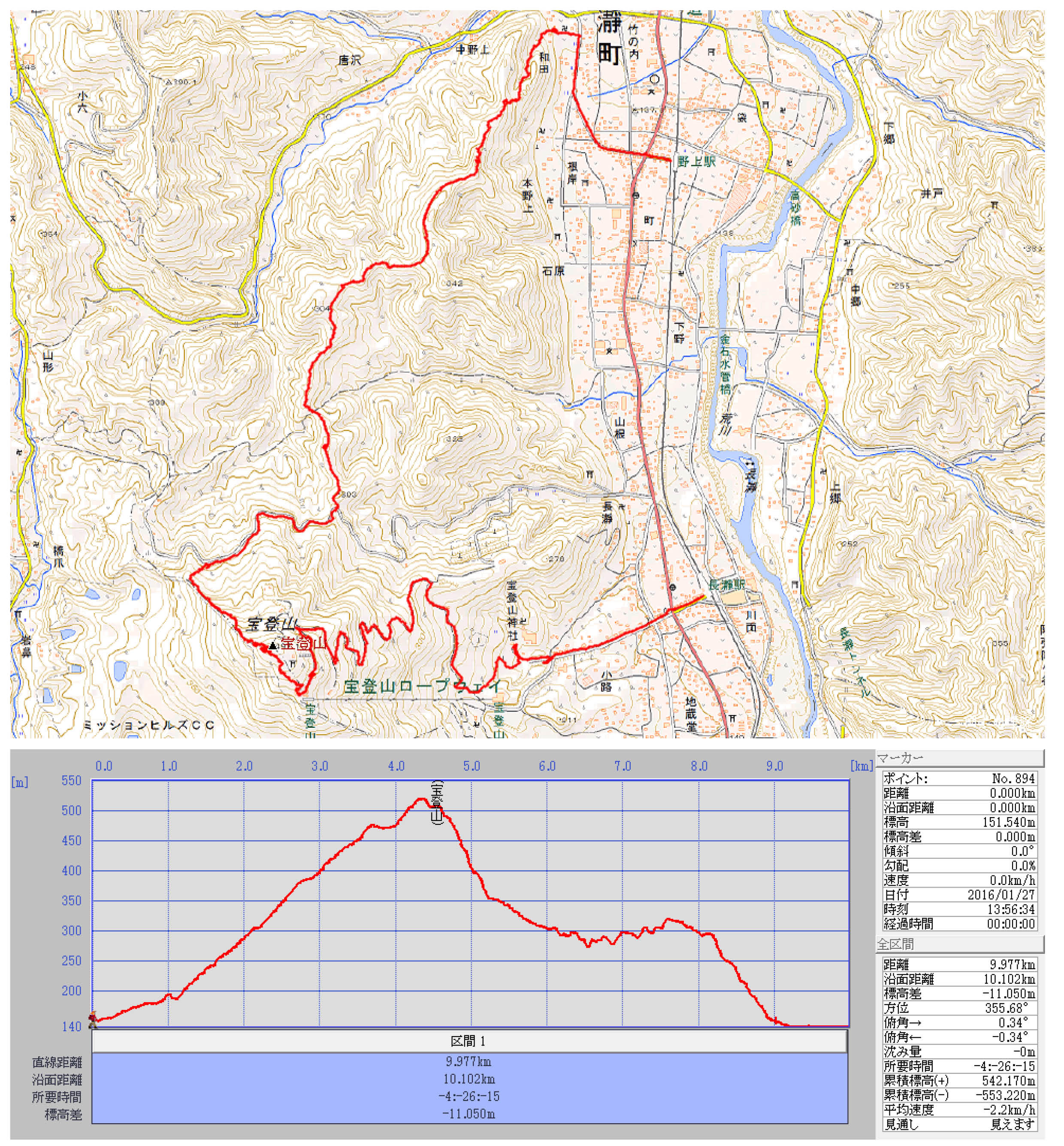 第152回ハイキングレポート記 中島 征雄 実施日 2016(H28)年1月27日(水) 天候 快晴 無風 暖か 行き先 宝登山(標高 497.1m) コース JR八王子7:00=7:41東飯能7:55=8:43西武秩父~御花畑9:06=9:29 野上駅9:32~9:45萬福寺~9:46長瀞アルプス入口(登山準備)9:54~10:08尾根上~天狗 山分岐10:29~氷池分岐10:50~10:55野上峠~11:07小鳥峠~林道11:11~11:24宝 登山登山口11:26~11:55宝登山山頂(昼食)・ロウバイ園12:43~13:35宝登山神社 13:42~13:56秩父鉄道、長瀞駅14:14=14:35御花畑~西武秩父15:08 参加者 折本 文夫、杉田 勝行、中田 信義、前北 勝司、野田 宏、中島 征雄 計 6名 概要 秩父鉄道野上駅を9時32分に出発、街中の道は雪掻きされているが、周りの畑は真っ白。萬福寺 の先の長瀞アルプス入口から雪道となるので、萬福寺の隣の民家の庭先をお借りし軽アイゼンを装着 する。登山道は雪がまだ残っていて、足跡は凍って滑り易いが軽アイゼンのお陰で安心。尾根へのロ ープがある急坂も滑ることなく上ることができた。背中に汗をかき始めたので小休止し、一枚脱ぐ。 尾根に上ってから標高を上げて行くと天狗山への分岐があり、ここからは下りとなる。途中、正面に 宝登山が見える見晴しの良いところや、氷池(天然氷を作る施設)への分岐があり、一番下ったところ が野上峠で、これから登りとなる。小鳥峠の先で林道に合流する。林道も雪が積もって凍っているとこ ろもある。林道をゆるやかに上ると15分程で左側に宝登山登山口がある。これからは急となる。 雪の登山道を5度ほど階段(合計で200段くらい)を距離600mを30分かけてゆっくりと上るが階段 の段差が大きく、雪もあり上り難い。最後の階段を上ると、ひょいと出た感じで宝登山の頂上があった。 頂上はロウバイを観に来た人で一杯。隙間を見つけて、シートを敷いて食事を取る。眺望は素晴らし く、武甲山、秩父市街、奥秩父の山々、両神山が良く見えた。食事後、ロウバイを観ながら西園から東 園と下りて行く。濃い青の空に黄色のロウバイ・雪の白は美しく、大勢が必死にレンズを向けていた。 頂駅から宝登山神社奥社の下を通り、車が通れる砂利道を下る。凍っていたり、抜かるんでいたりする 道を気をつけてゆっくりと下る。休憩を入れて、13時半過ぎに下り終わり宝登山神社に着き、参拝をす る。参拝後、参道を下って13時56分に秩父鉄道長瀞駅に着いた。 雪道では、いつもとは違う筋肉を使って歩いてしまうので、筋肉痛になりそう。雪の様子は前北さん の写真を見て下さい。 歩行距離:10.0km。 移動時間:3時間20分。 移動平均速度:2.99km/h。 全体平均速度:2.25km/h。 以上