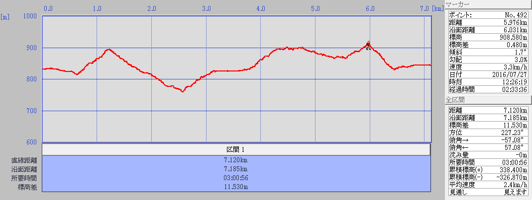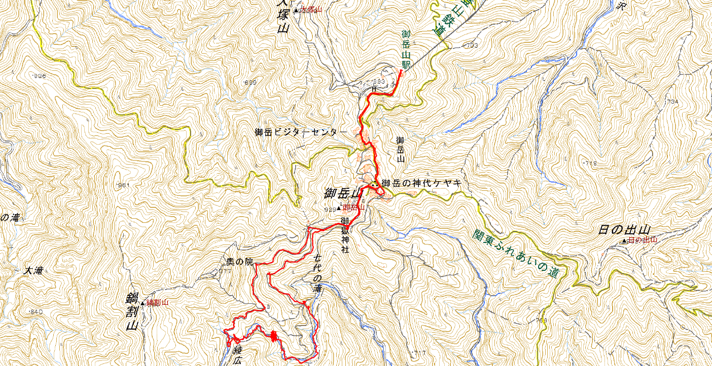 第156回ハイキングレポート記 中島 征雄 実施日 2016(H28)年7月27日(水) 天候 曇り(霧) 行き先 御岳ロックガーデン コース JR立川8:11?8:43青梅8:44?9:02御嶽~ 御岳駅バス停9:21⇒9:30ケーブル下バス停ケーブル滝本駅9:42=9:48ケーブル御岳山駅ケーブル御岳山駅前広場9:54~10:13鳥居前広場10:20~随身門~御嶽神社下大岳山分岐10:22~長尾平入口10:25~ロックガーデン分岐10:29~10:44天狗岩10:49~11:10休 憩所11:30~11:40綾広の滝11:42~大岳山分岐11:48~天狗の腰掛杉12:11~12:17 長尾平入口12:23~12:29随身門下広場12:32~神代欅~12:52ケーブル御岳山駅13:15 =13:21ケーブル滝本駅~ケーブル下バス停13:33⇒13:45御岳駅バス停~JR御嶽14:19 参加者 宇山 治男、杉田 勝行、野田 宏、前北 勝司、中島 征雄 計5名 歩行距離:7.1km。全体所要時間:3.01H。移動時間:2.28H.停止時間:0.33H. 移動平均速度:2.89km/h。全体平均速度:2.36km/h。 概要 標高831mのケーブル御岳山駅前広場で準備し、9:54出発。雲(霧)が濃く、先が見えにくい。舗装道路を進み、ビジターセンター下を通り、茅葺の御師住宅を過ぎた先から上り坂となり、徐々に傾斜が増す。 神代欅の手前の分かれ道で左の緩やかな道を進む。日の出山への道を左に分け上ると土産物店が並ぶ商店街に出てその先で広場(トイレあり)に出る。ここから階段を上る。鳥居や随身門を潜って階段を曲がって上ると、右の武蔵御嶽神社への上り階段と左の長尾平、大岳山への道に分岐する。 大岳山への道を下りながら進むと長尾平への分岐に着く。ビジターセンターの情報板に「7月20日に長尾平の先、50mの所で熊を見た」との掲示があった。長尾平への道を左に分けて下り進む。 天狗の腰掛杉の手前で左に天狗岩への細い道があり、下る。14-5分下ると天狗岩に着く。巨岩の上に天狗の像があるのだが、霧で見えない。水分補給の休憩をとる。 ここから、東京の奥入瀬と言われるロックガーデンがが始まる。石の階段を降り沢に出る。これからは、沢沿いに上り、何か所かで沢を飛び石で渡って進む。霧で、まさに深山幽谷の世界である。 沢沿いにギンバイソウが咲いていた。巨岩、奇岩、そして岩の間の小さな滝となった流れを楽しみながら上って行くとトイレがある休憩所があり、ここで昼食をとる。 沢沿いに上ると、綾広の滝に着いた。水量は多いようだ。 ここから一気に上り、滝上の沢沿いに進むと直ぐに大岳山への道と合流。右折して帰途に就く。林道をアップダウンし進む。途中にトイレ建設現場があり、これから先は作業車が通るので道はぬかるみ、靴やズボンが泥だらけになる。 天狗の腰掛杉を通り、長尾平入口で休憩をとり、随身門をくぐって下る。鳥居の両側にレンゲショウマが4-5輪咲いていた。 商店街から神代欅下を通って急坂を下り、御師集落を通って、12:50過ぎにケーブル御岳山駅に着いた。 今日は、ずっと霧の中で遠くを見ることは出来なかったが、渓流歩きは楽しめた。 以上