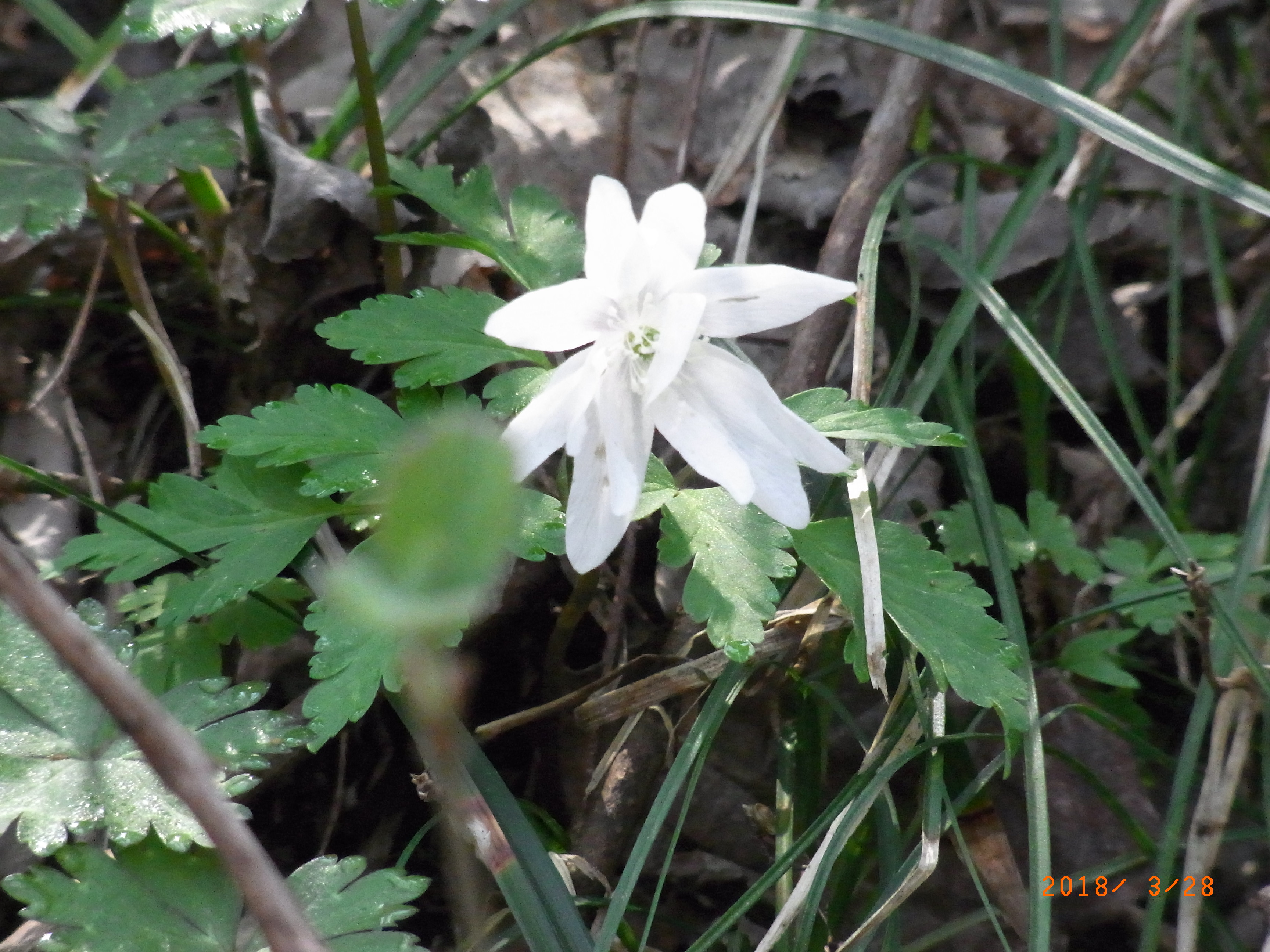 高尾駅北口バス停は大勢のハイカーで混雑していた。満員のバスで日影バス停まで行く。小仏川の橋を渡り、左手の木道に入り、小仏川の岸に咲く花を見に行く。この時間のこの辺りはまだ陽が差さずニリンソウはチラホラ、ハナネコノメは咲き終わり、ヨゴレネコノメ、コチャルメルソウ、ユリワサビ、セントウソウ、キクザキイチゲが咲いていた。