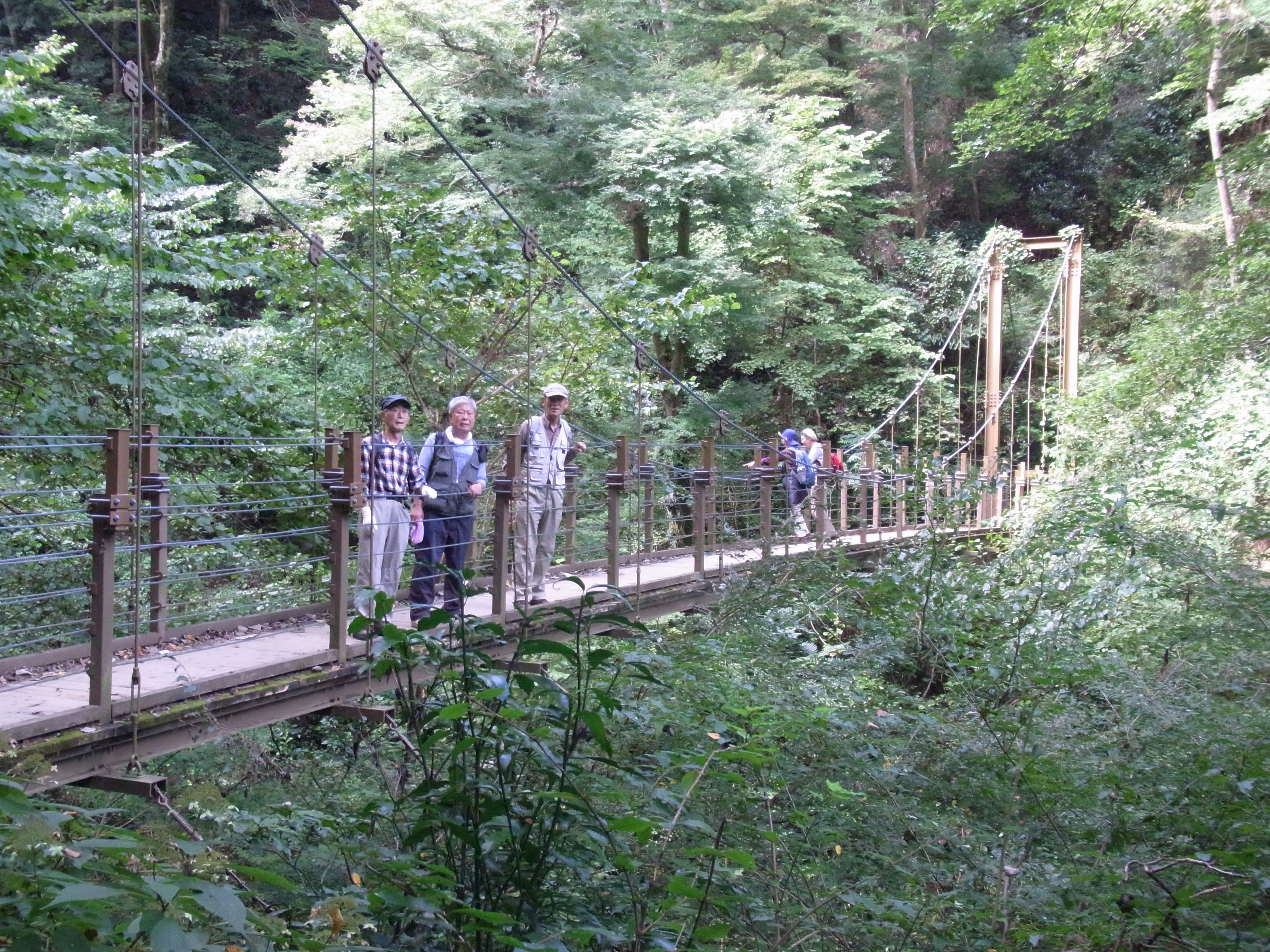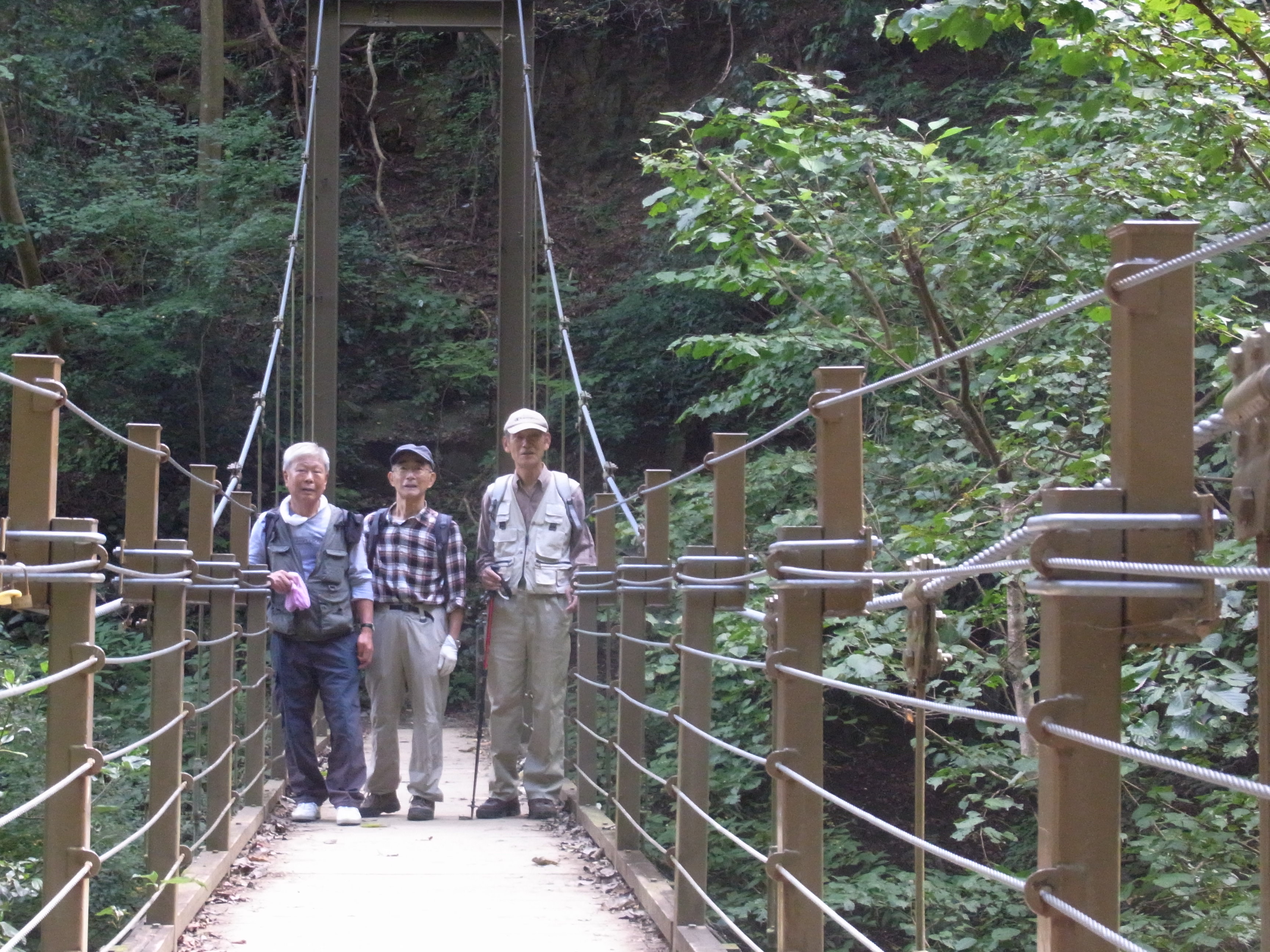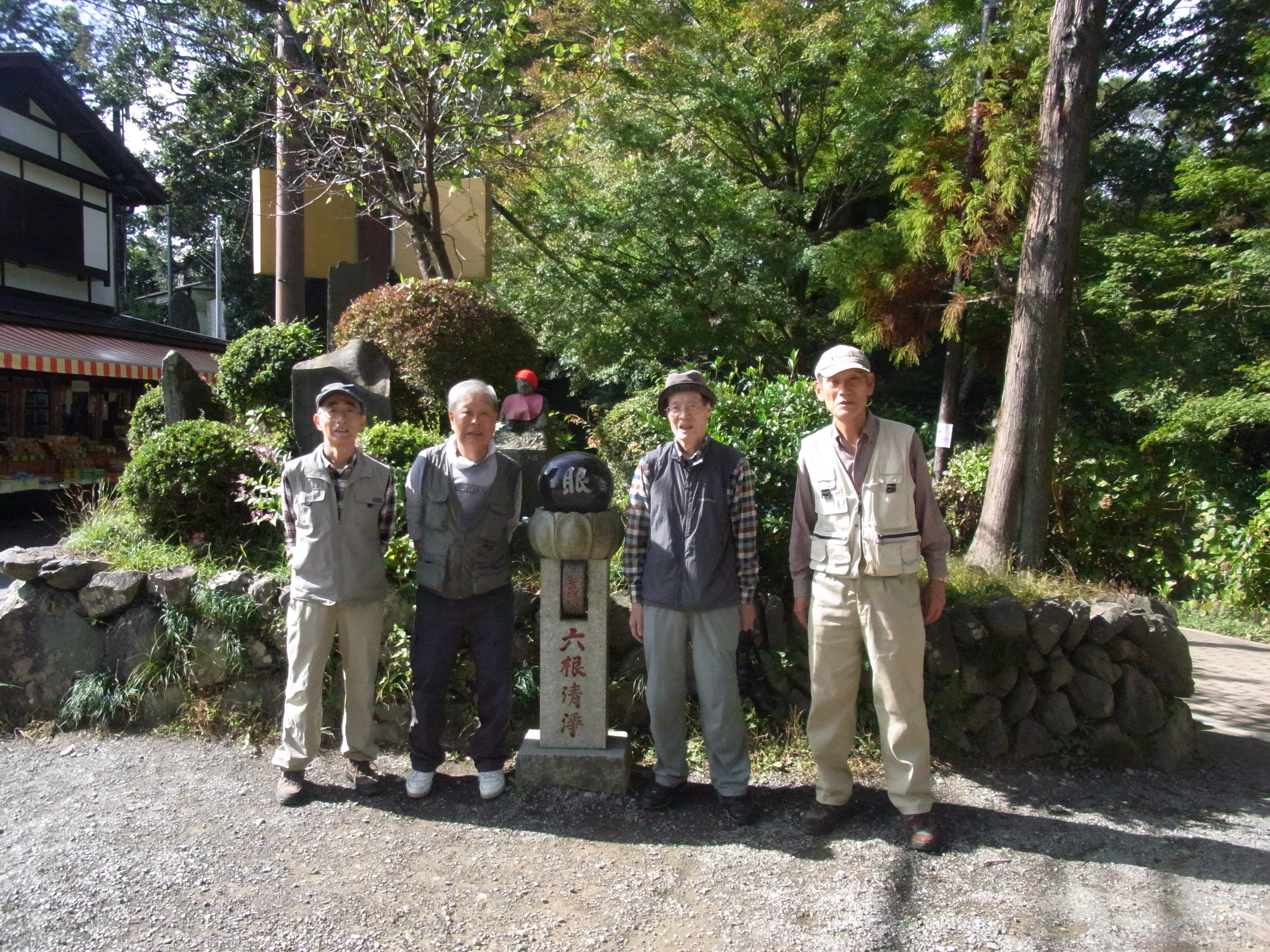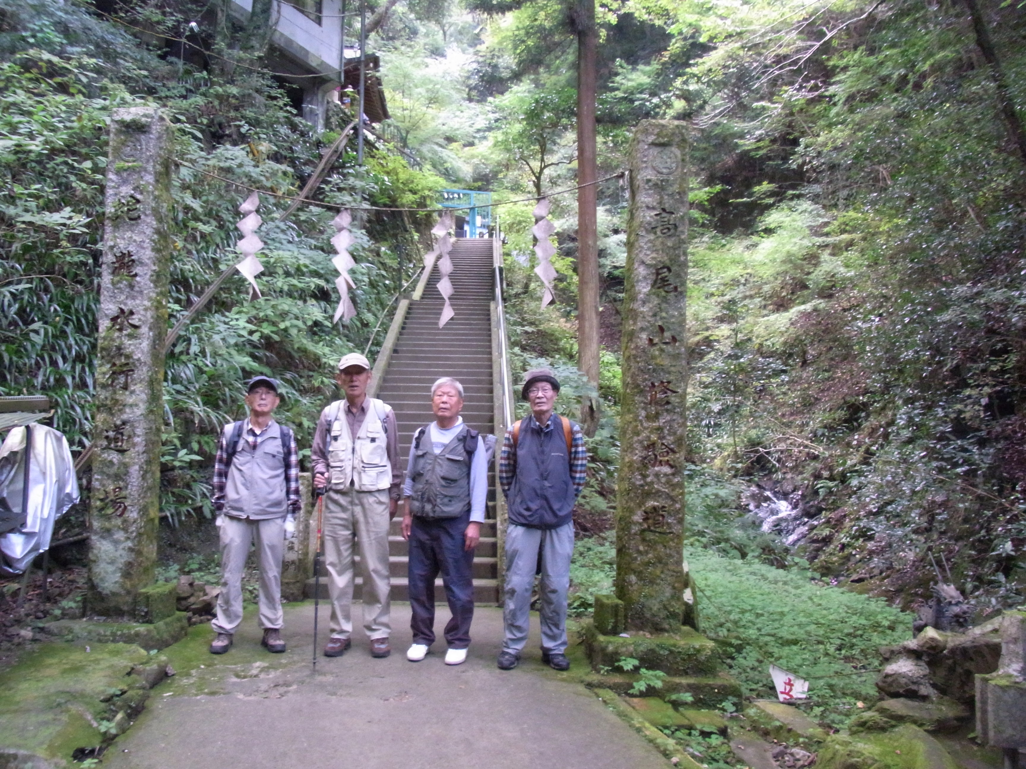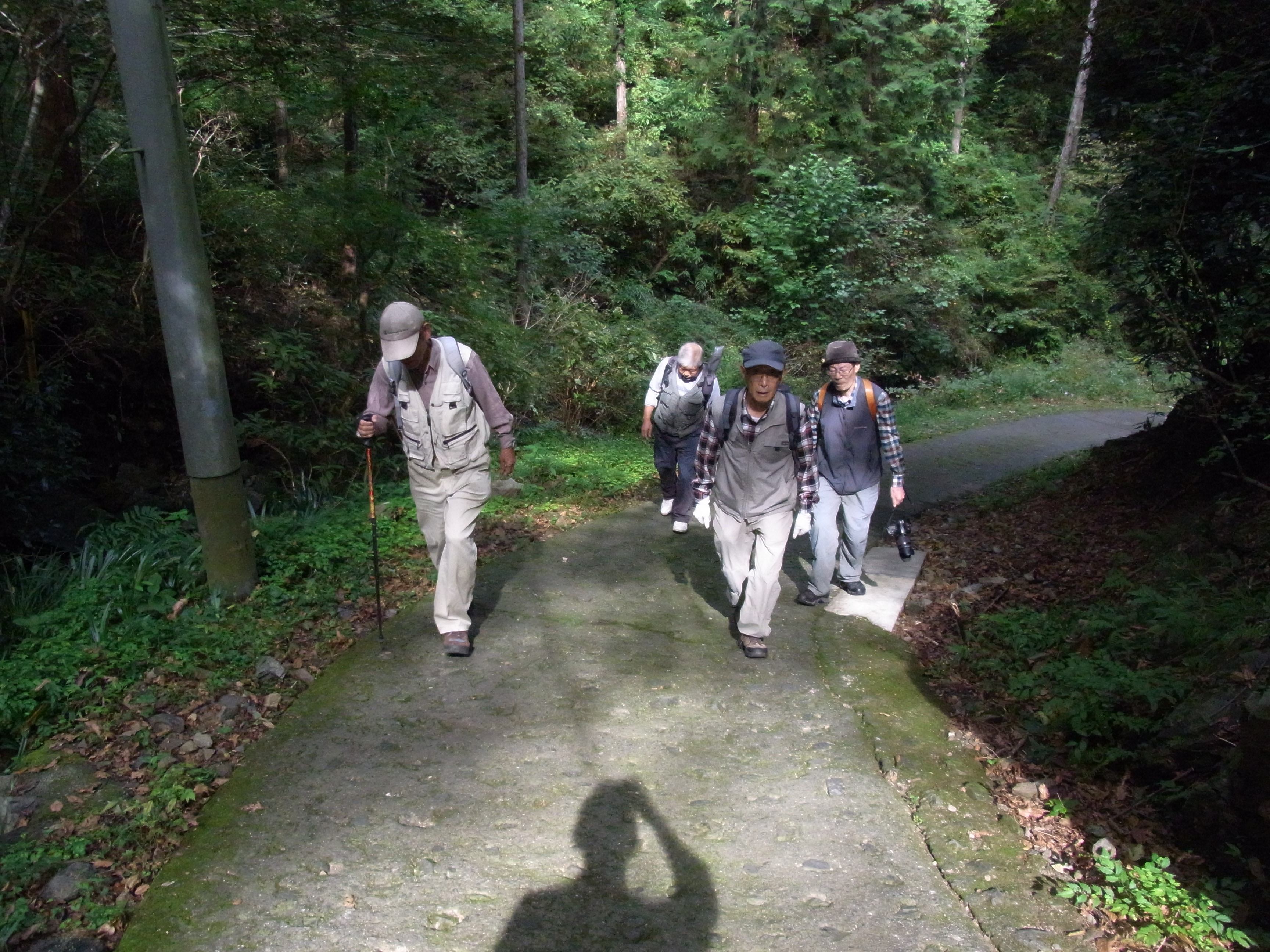 3ヶ月ぶりのハイキング。予報では「厚い雲に覆われ、小雨も」とのことであったが、バス停に集合したときには既に青空が広がっていた。高尾駅9時12分発のバスに乗り、蛇滝口で下車。旧甲州街道を進み、トイレがある広場から小仏川脇を進み湯ノ花梅林に出る。梅林から急な舗装の林道を上る。林道は沢沿いで趣がある。歩き始めて15〜6分、汗が出始めたので1枚脱ぐ。舗装林道が終わり階段を上ると蛇滝の水行場がある。蛇滝の横の青龍堂からジグザグの急な山道となる。休憩を入れ登り続け、階段の先に2号路と合流。霞台園地への道をとり、10:29霞台園地に到着。ケーブル駅がある1号路なので大勢の人がいきかっている。休憩後、用事があり下山する前北さんと別れ、4人は1号路を進む。