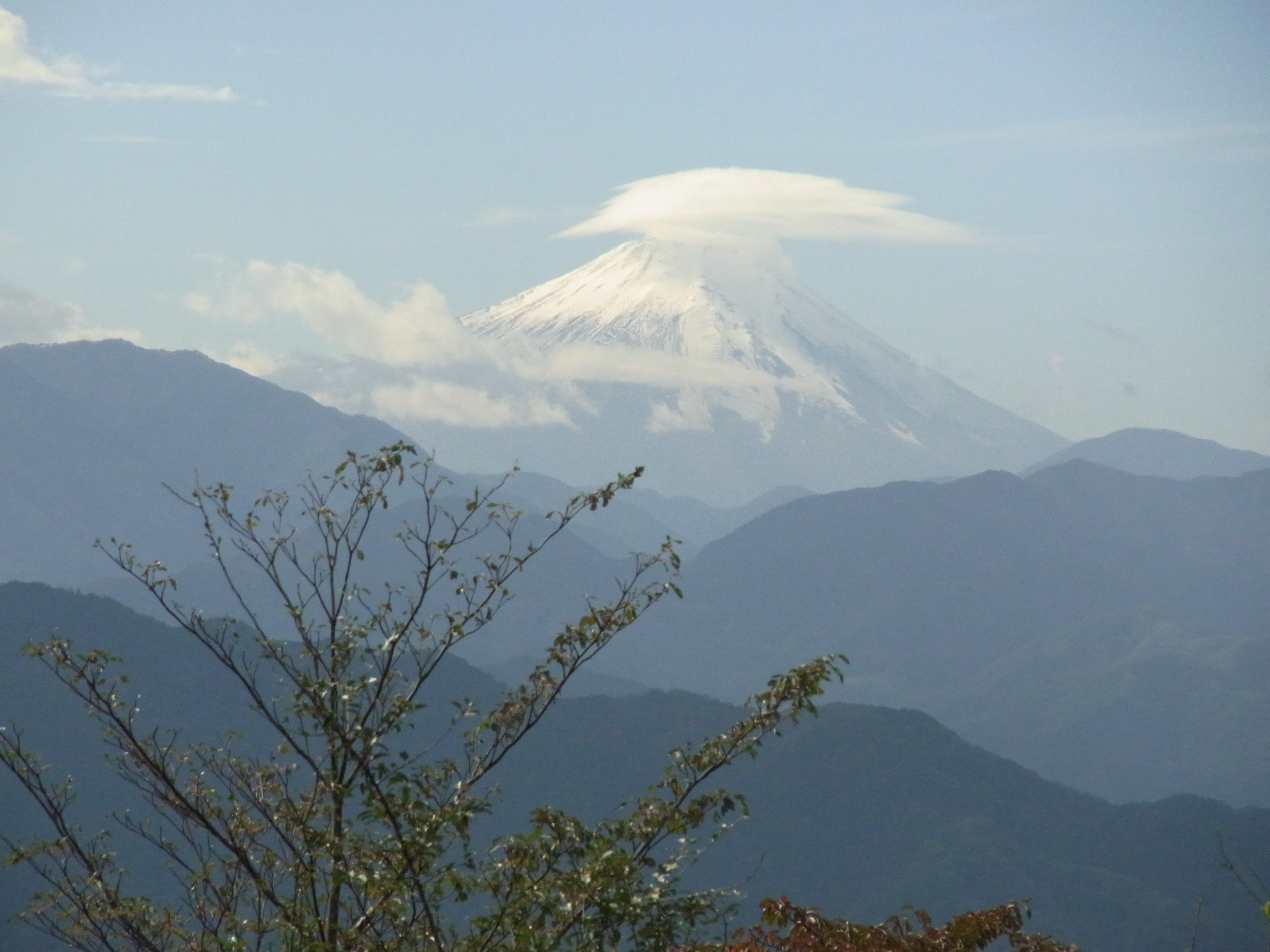 昼食後、大見晴台に富士山を見に行く。真っ白な頂に笠雲を載せた富士山。今日は余り期待していなかったので得した気分。堪能して下山開始。
